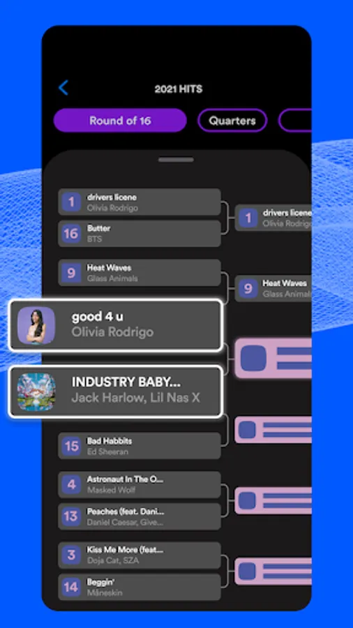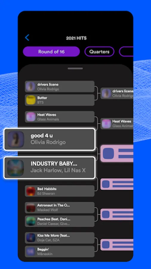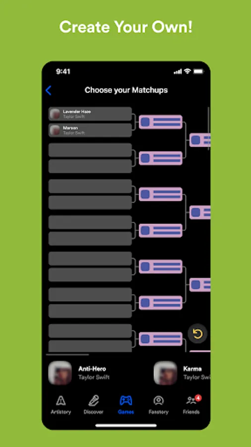 Complete song brackets, Compare your choices, Comment your hot takes, and Create your very own