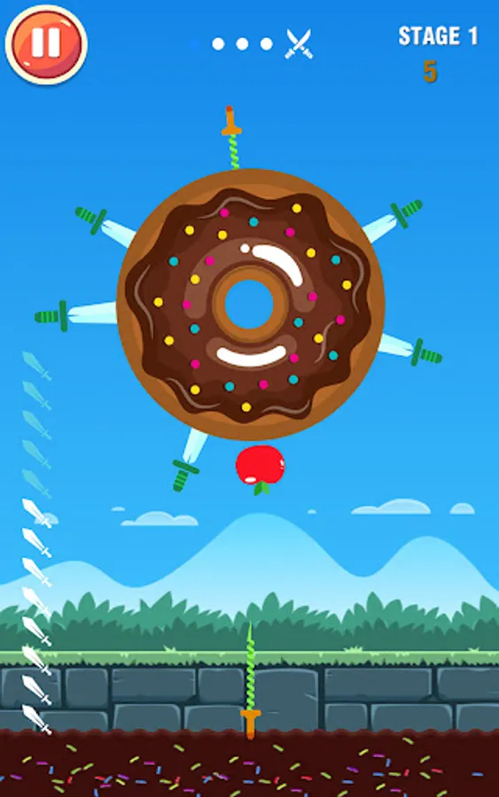 Welcome to the flippy knife strike smash hit game which is best to kill your boring time. You have to throw your knife up to the donut to break it within the given knives. There are many unbeatable challenges available in this knife dart, throw, hit, break it donut game. You will see many sweet yummy food items like Blaze Pizza, Smart cookies, chocolate for Choco slices, mirror cakes, cupcakes, pastries, biscuits, Burger bun, Slash apple but you have to break it with the hit of the knife.