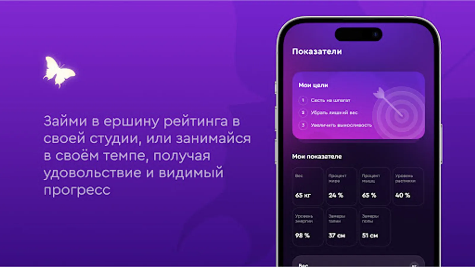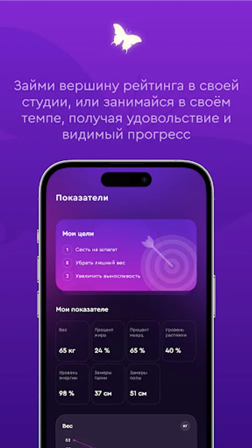 Вы сможете фиксировать личные цели в фитнесе и растяжке прямо в приложении. И контролировать изменение ваших ключевых спортивных показателей по мере движения к цели.