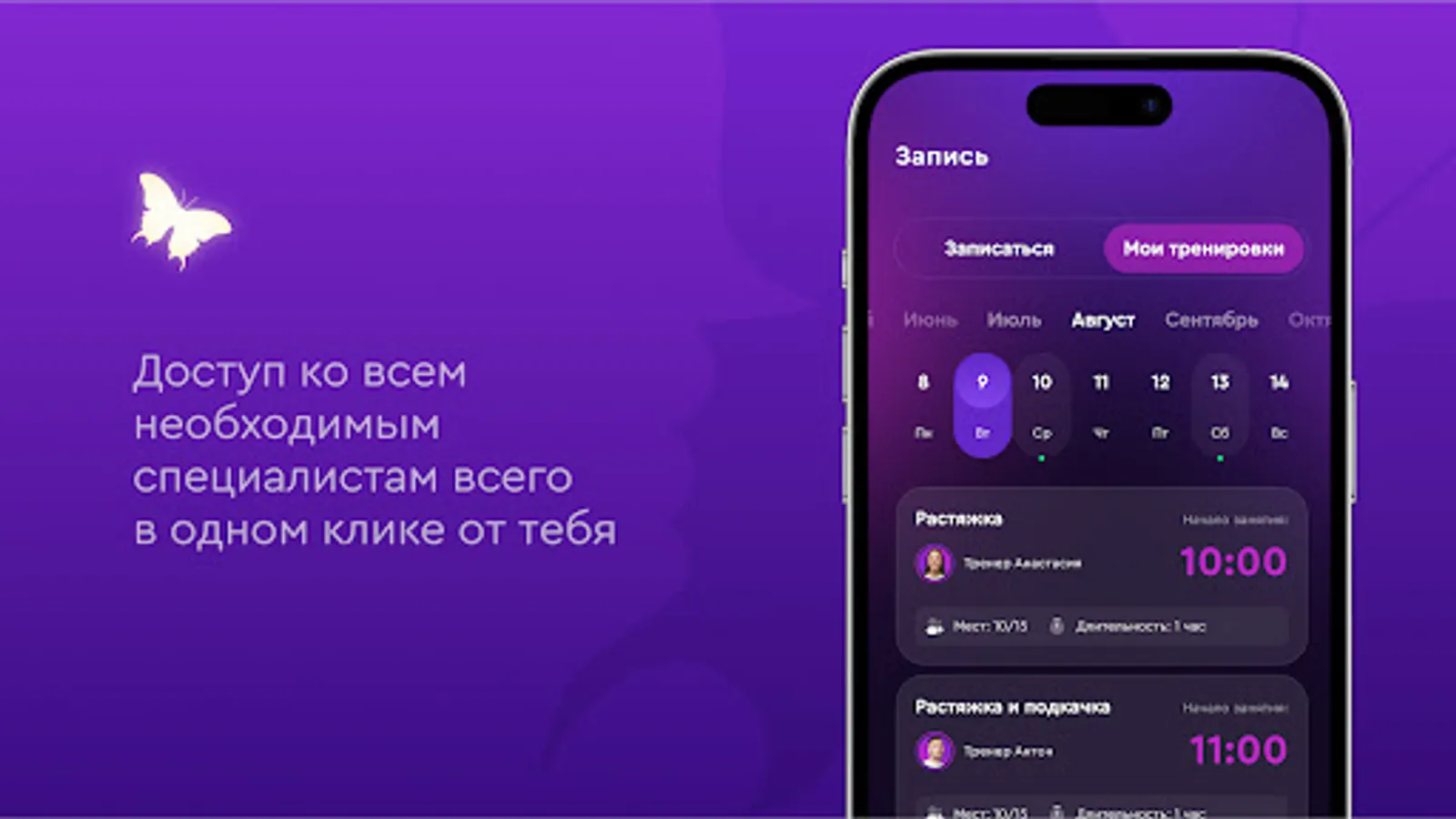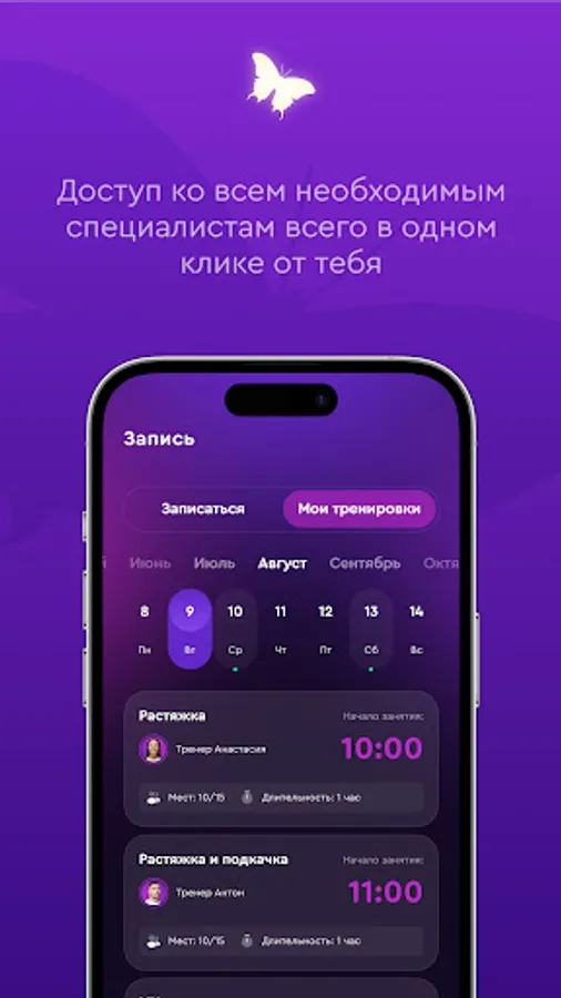 Вы сможете записываться на любую тренировка выбрав её в расписании, или отменить свою запись нажатием одной кнопки.