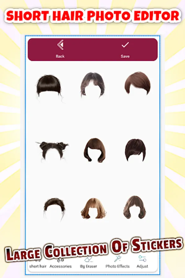 Welcome to the perfect destination for your short hairstyle needs. Our hair style for short hair offline app is here to present you with the hottest short hairstyle trends of 2023. We'll guide you and let you know which styles best suit your unique face shape. Instead of downloading a makeup camera editor, why not try the hair style stickers available in this innovative "short hair editor app for girls"? These stickers can help you visualize how the hairstyles match your face shape. Whether you have wavy, coarse, curly, fine, or straight hair, you'll find options that suit your specific texture. Remember, hairstyles have little to do with age. If you adore a particular cut you see on a 20-something, there's a good chance it can work for you too.