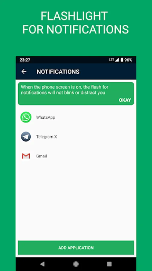 - Flash can be used for notifications from any application or messenger