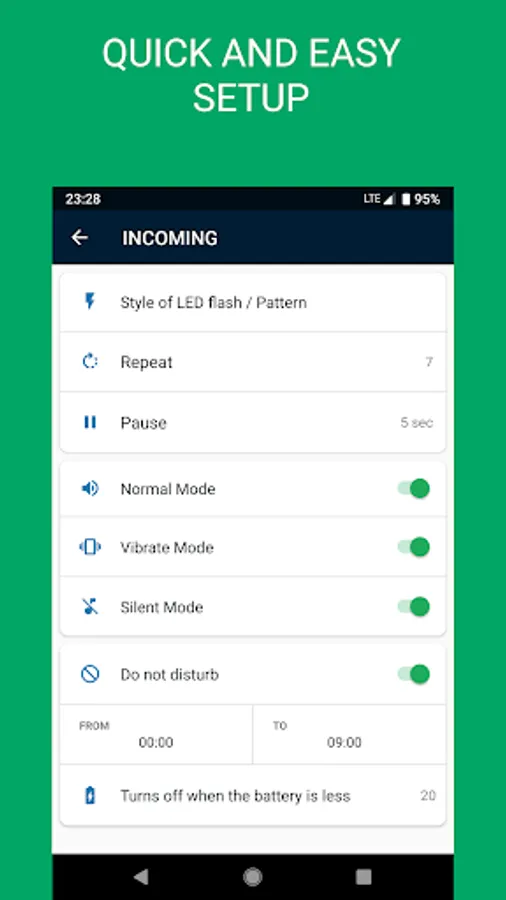 - Flash on notifications from Viber, Facebook, Messenger, Instagram, Skype, and Whatsapp
