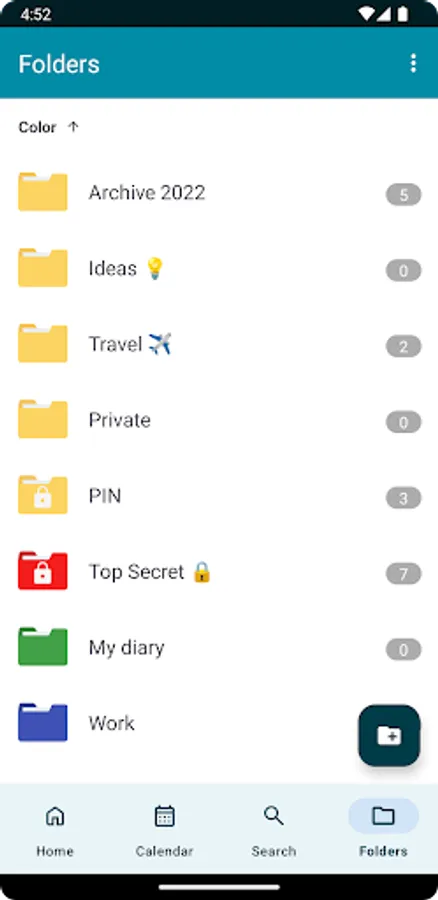• Folders: Organize your notes into folders