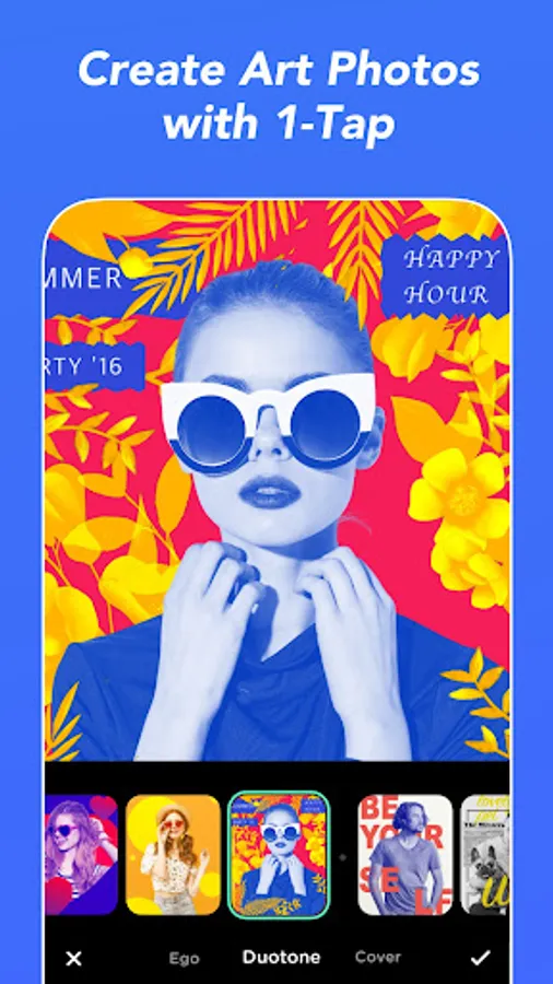 One-taptemplates that automatically match the best filters, light effects, and scenes. You only need a selfie and one tap to create stunning artistic photos instantly.
