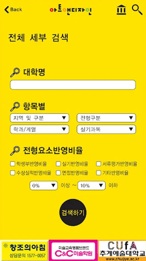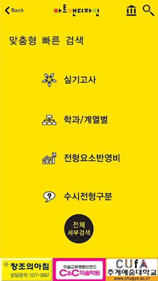 수시모집 미대 입시요강은 물론 대학별 독점공개 수시우수작을 편리하게 검색할 수 있습니다.