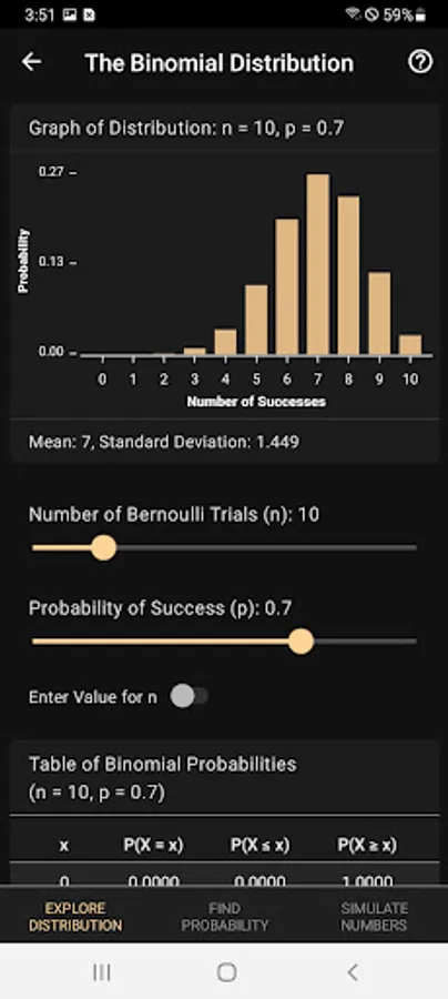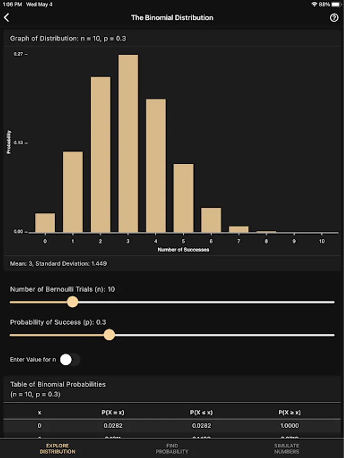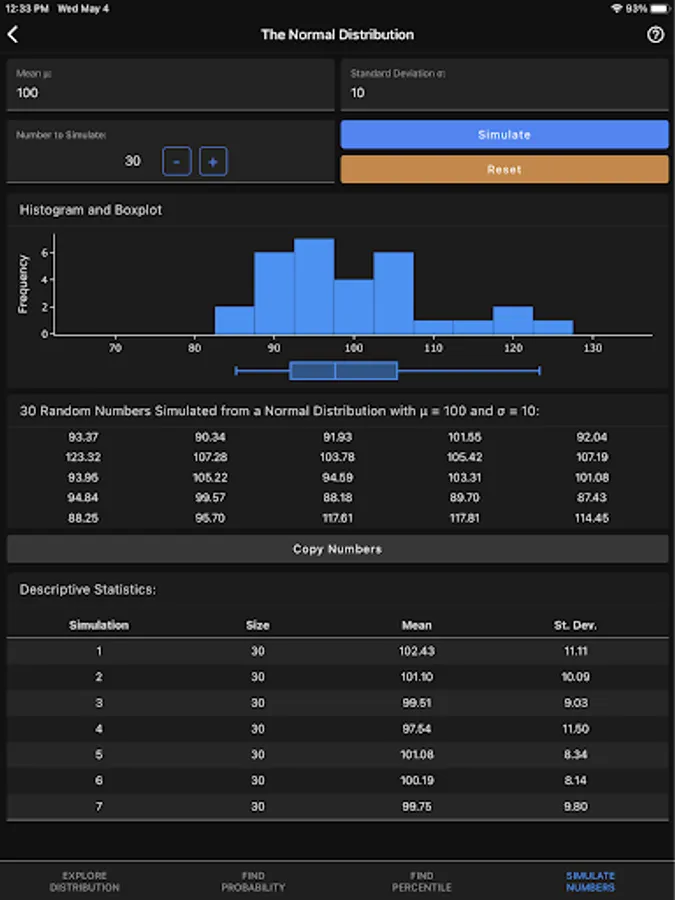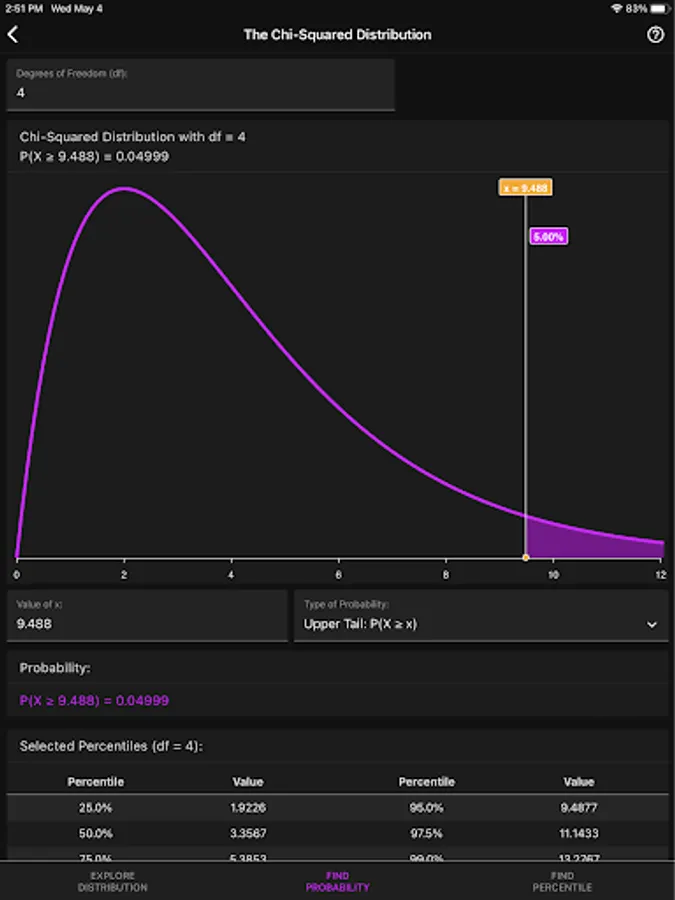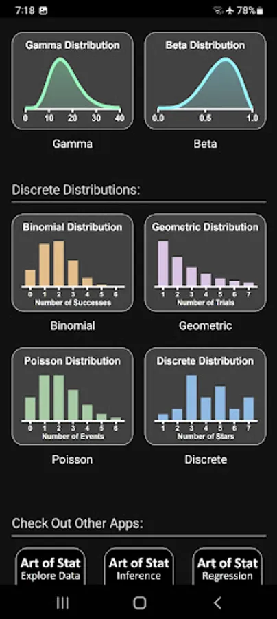 Developed for both students and teachers as a handy tool to visualize and explore probability distributions and their properties. Don't rely on boring and complicated graphing calculators that don't deserve their name. Instead, use the interactive graphics that this app provides to learn about probability distributions and visualize results side-by-side with the numerical solutions.