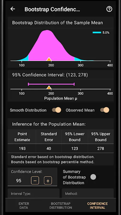 - Bootstrap Confidence Interval for a population mean, median, or for the population standard deviation or IQR.