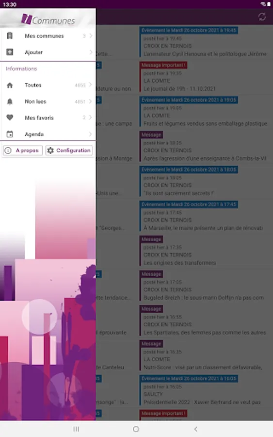 The agenda warns you and provides you with information on any event taking place in your municipality (s).