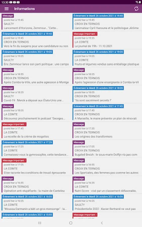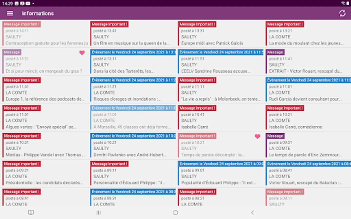 The essentials without frills: the priority is local information, quickly, accessible with little manipulation. Read and unread information, important information for you, filterable in a single action.