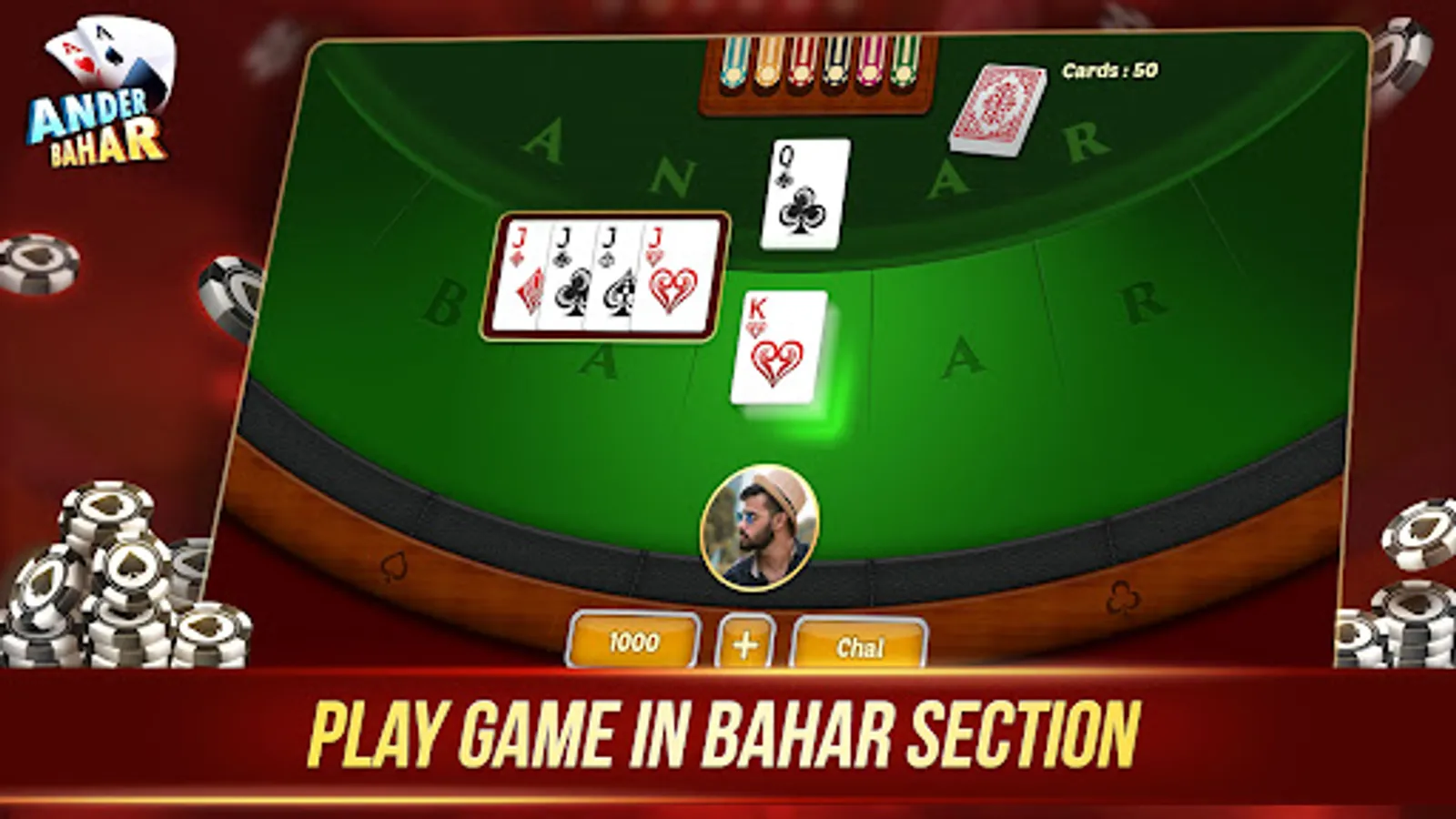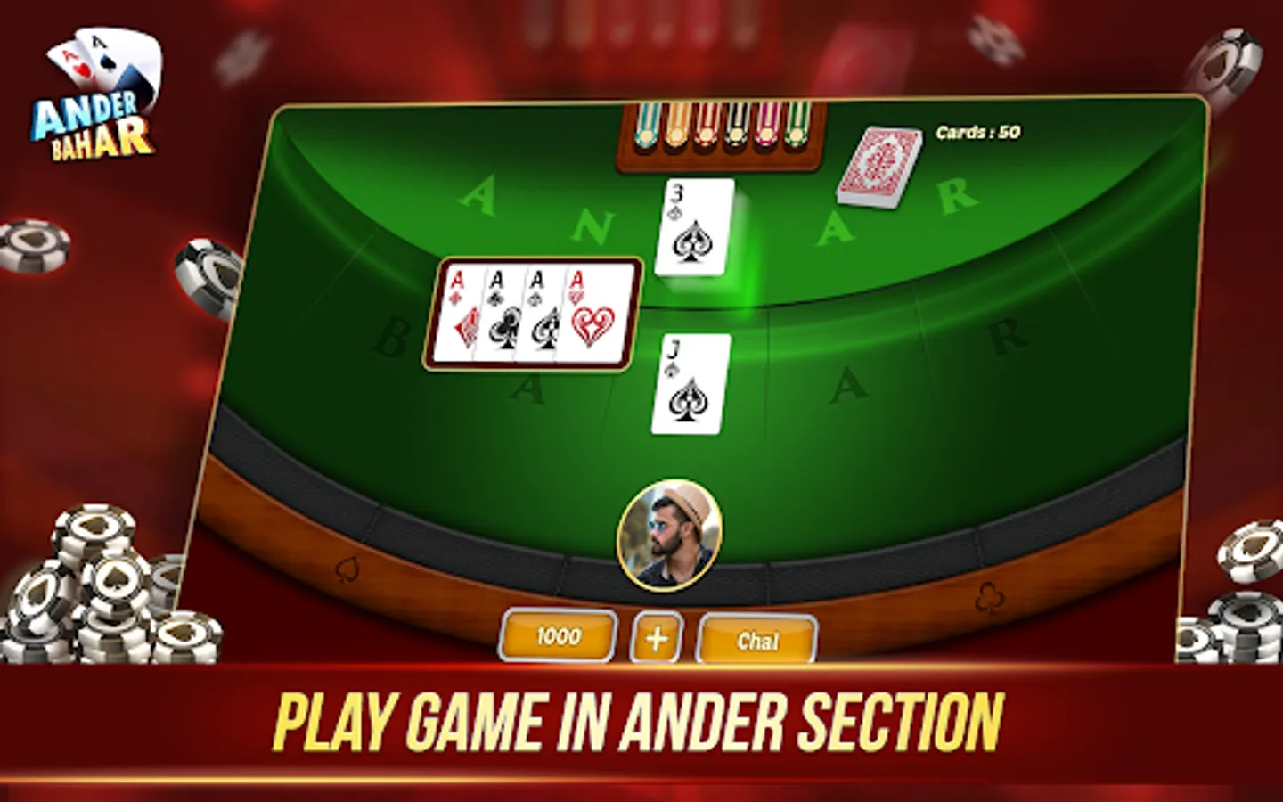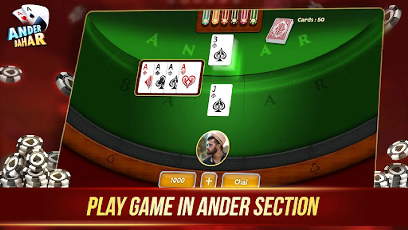 The Andar Bahar Game is a traditional Indian betting card game which originated in Bangalore many centuries ago, Andar Bahar Card Game is a very simple 50/50 luck-based game that involves the use of a single pack of cards.