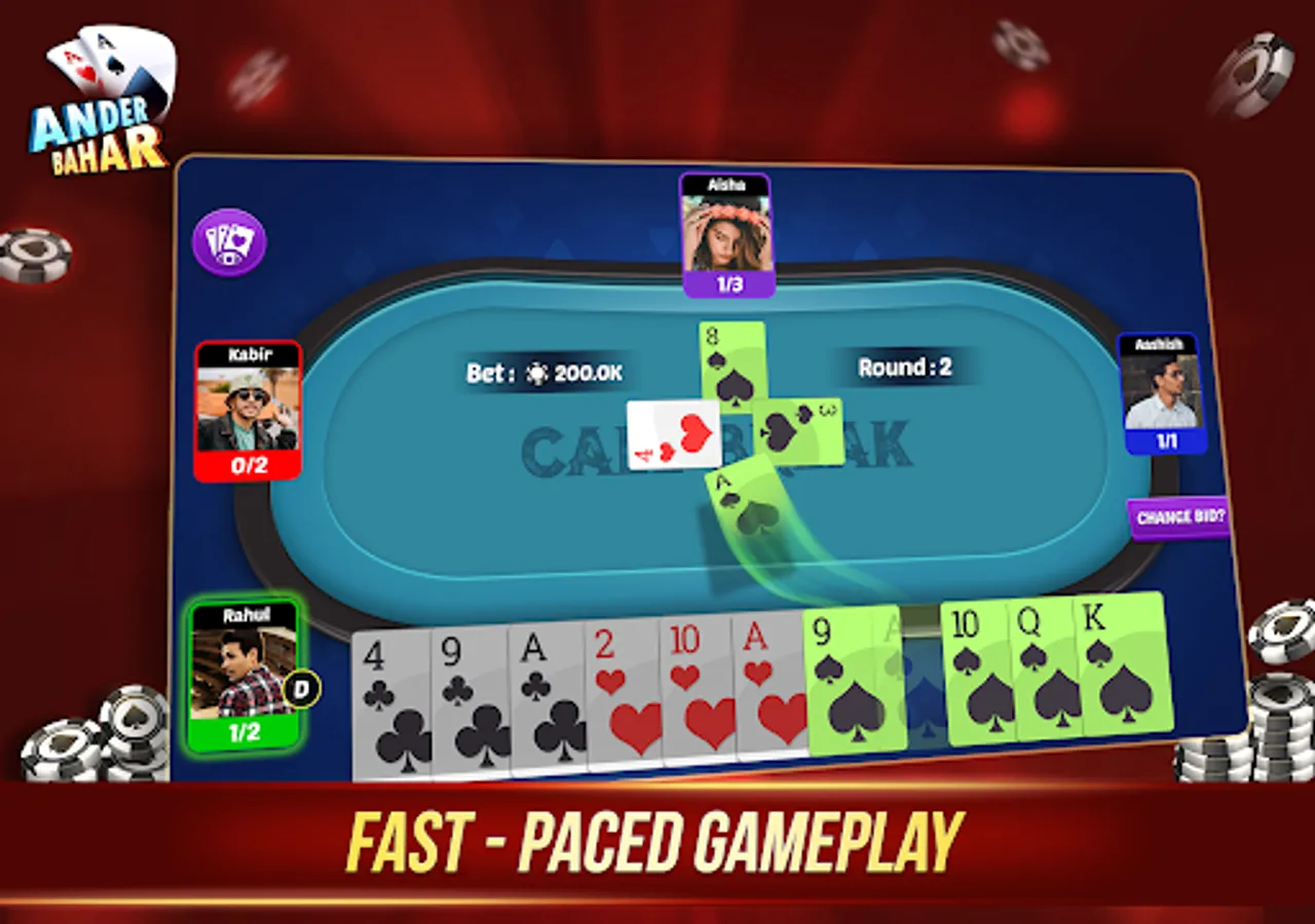 The Andar Bahar App also has a feature of multi-gaming, if you get bored with one game start playing a Call Break Card Game.