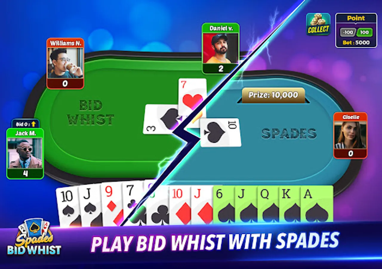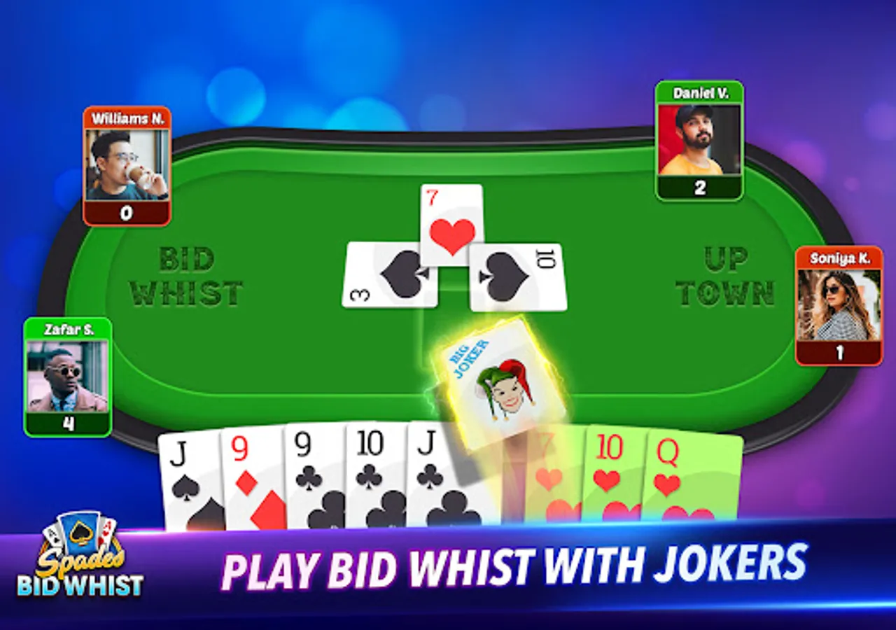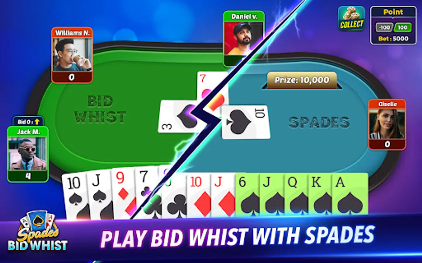 Competitive Gameplay: Engage in intense Bid Whist and Spades matches against skilled opponents. Adapt your strategy as the game progresses to come out on top.