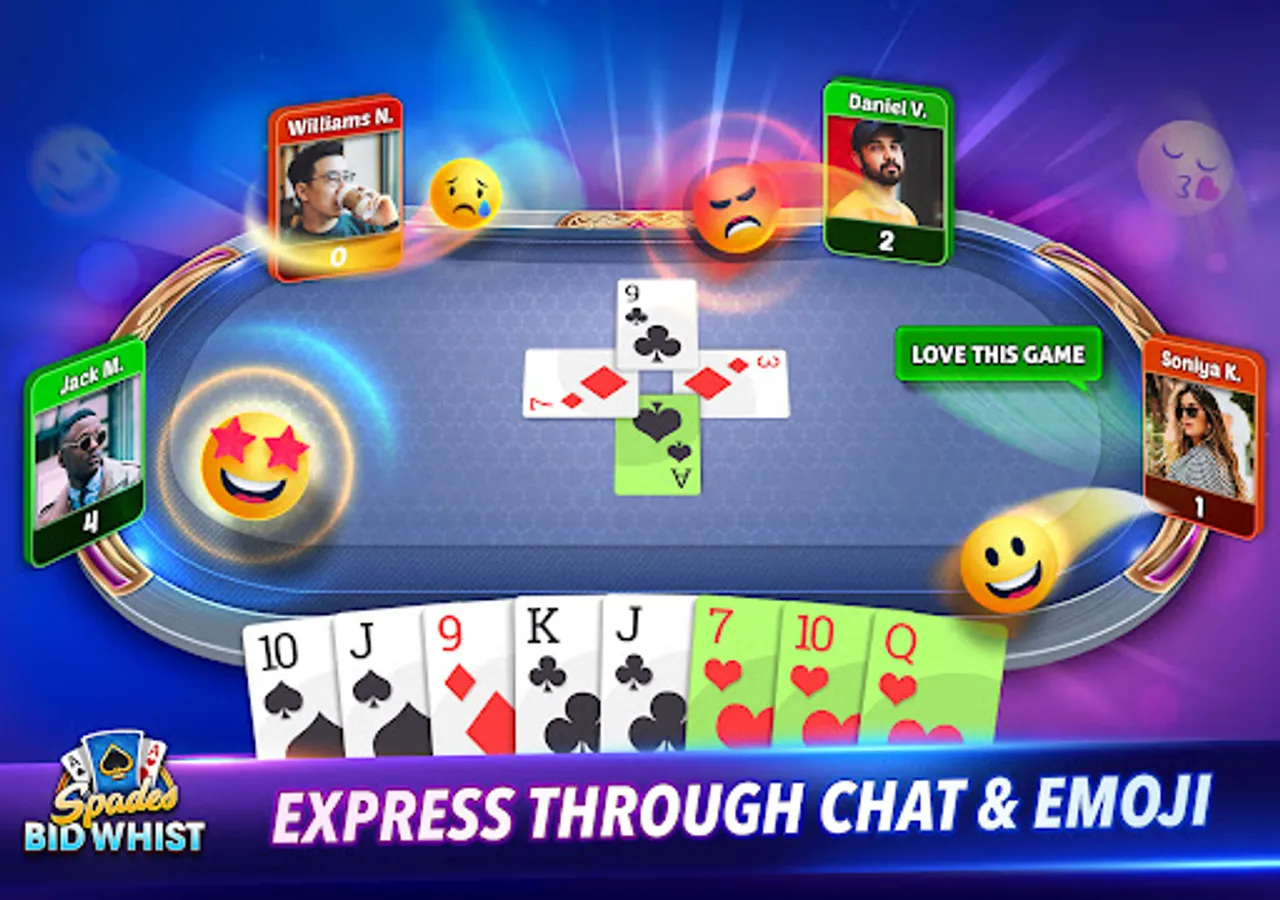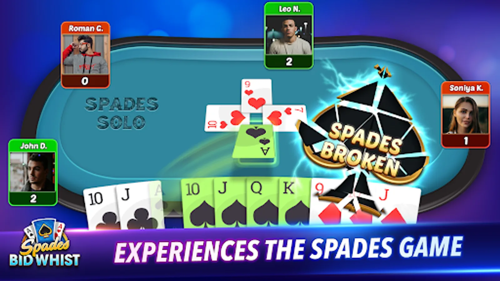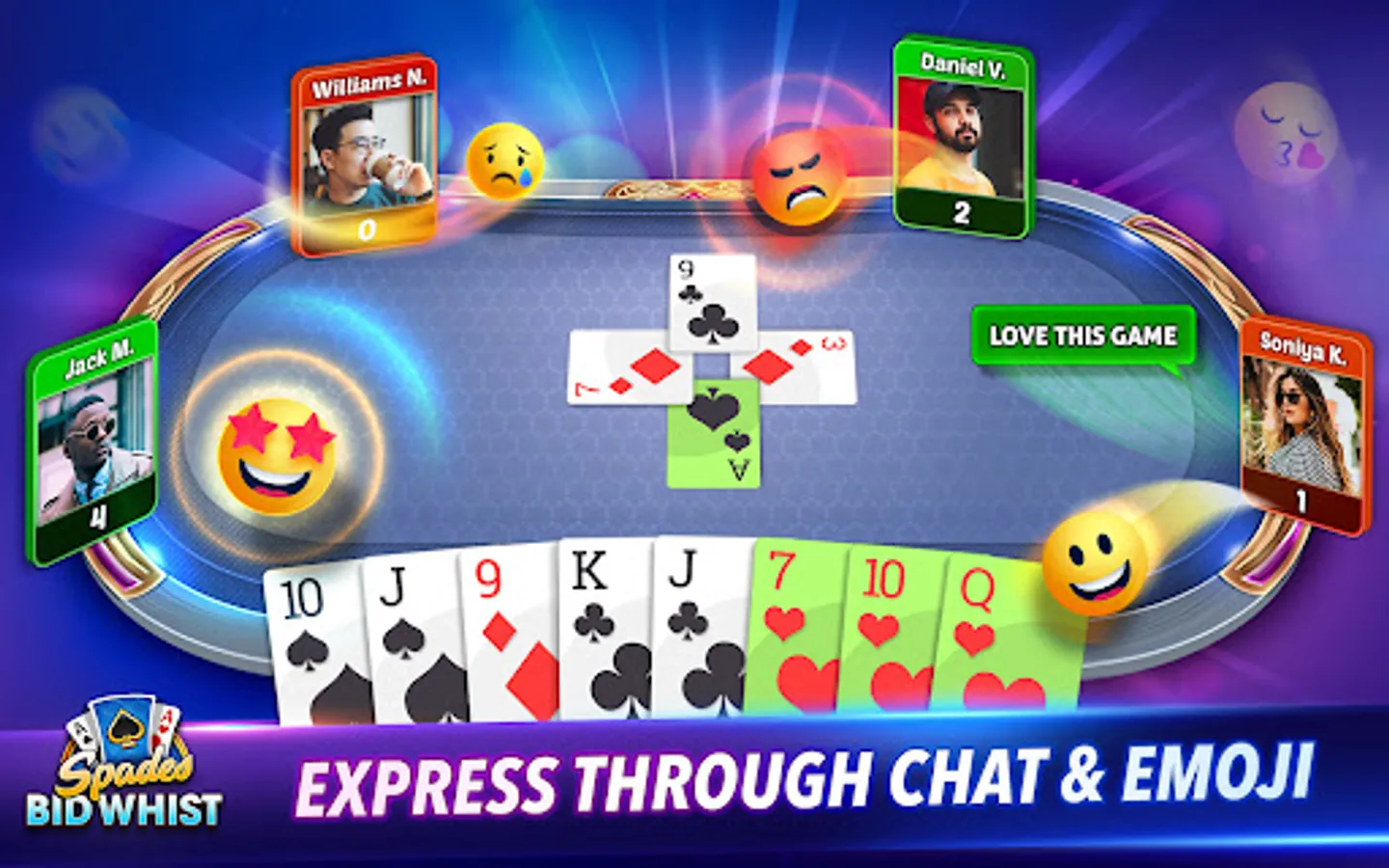 Competitive Gameplay: Engage in intense Bid Whist and Spades matches against skilled opponents. Adapt your strategy as the game progresses to come out on top.