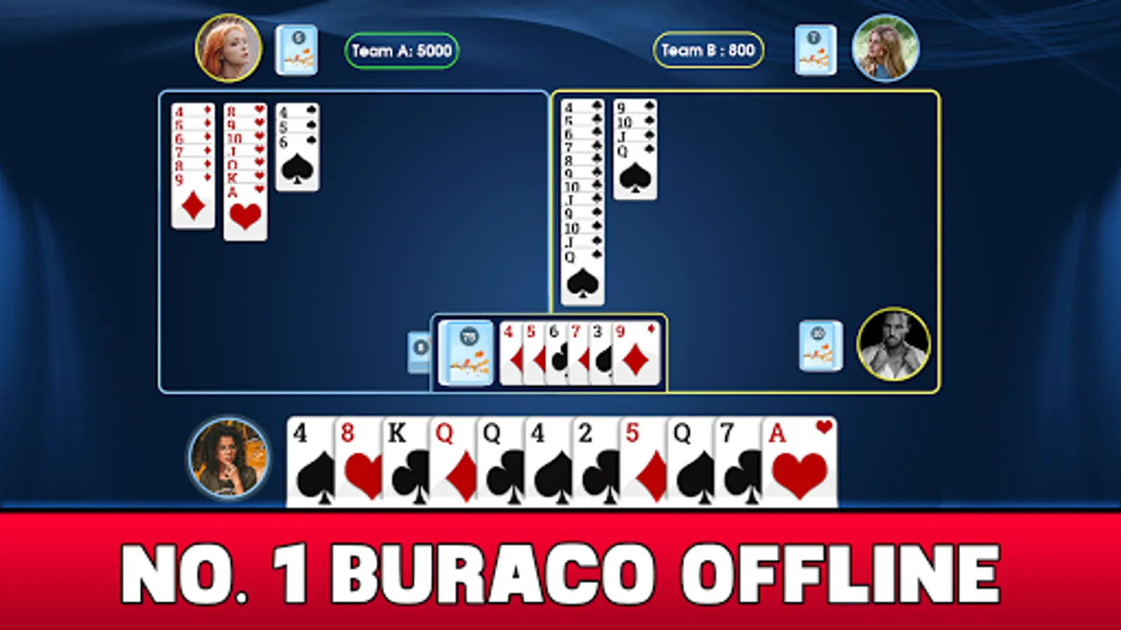 Buraco is a four-player partnership game, It is a free offline game, you can set up matches with 2 or 4 players, and meld lots of canasta playing against bots, If you play burrachi, pinelle, biska, burrachi e pinelle then you will love playing buraco game.