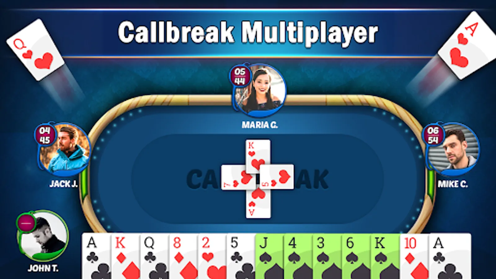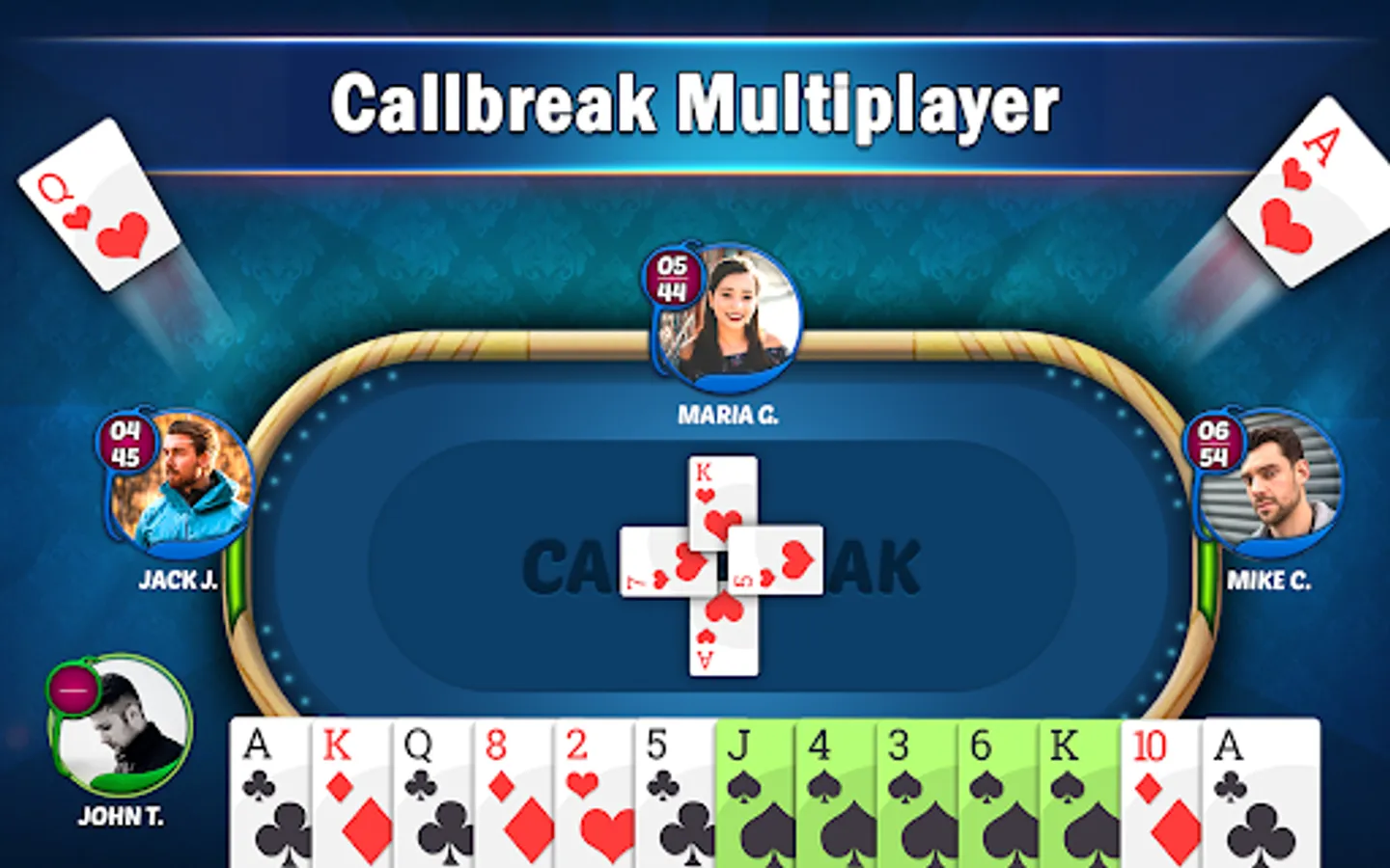 to Spades and Call bridge, Play Callbreak Multiplayer any time anywhere, It's also known as