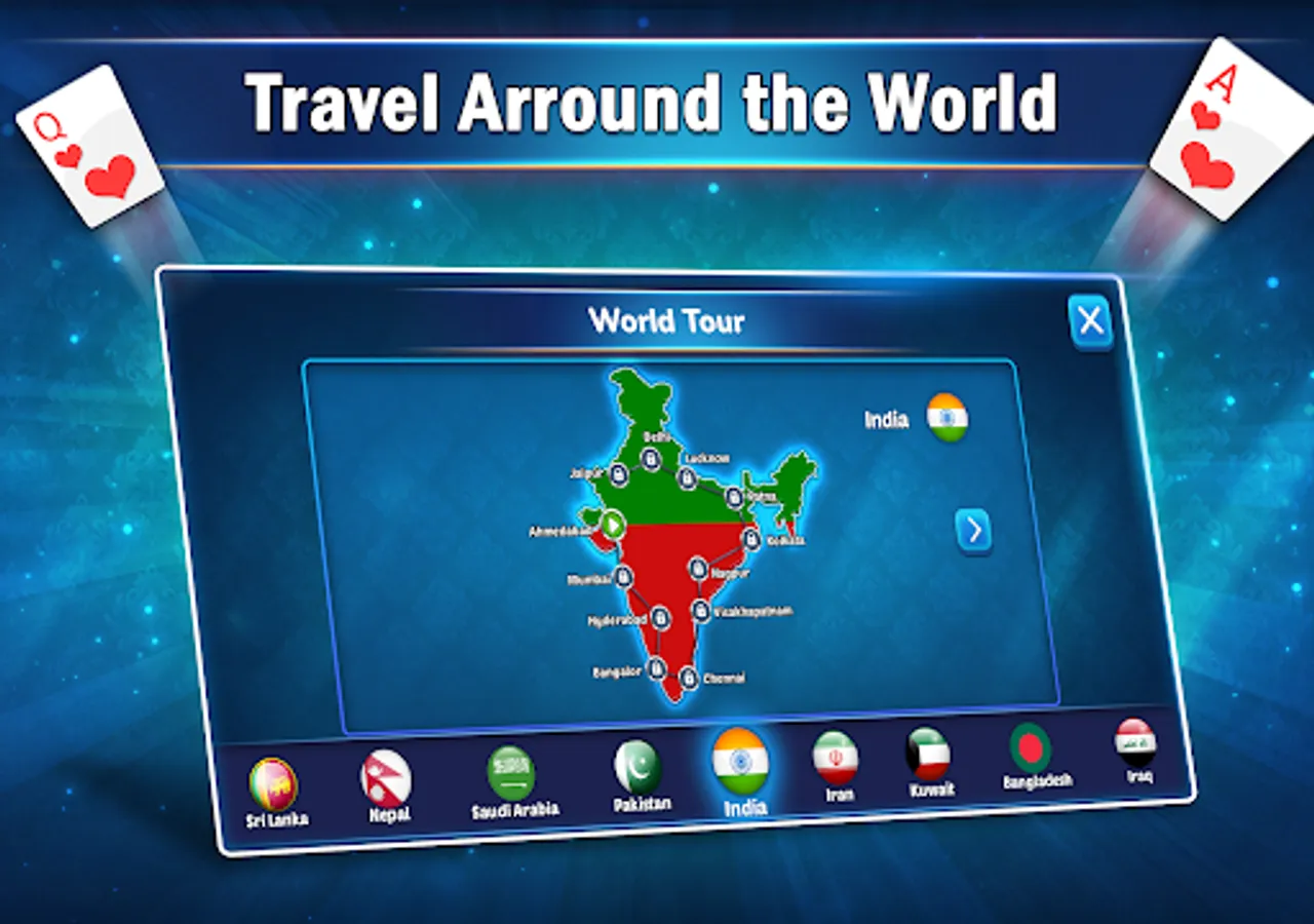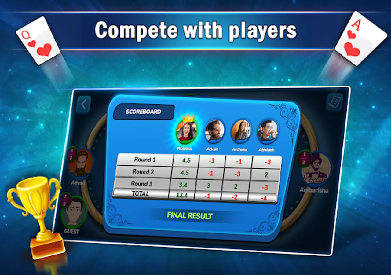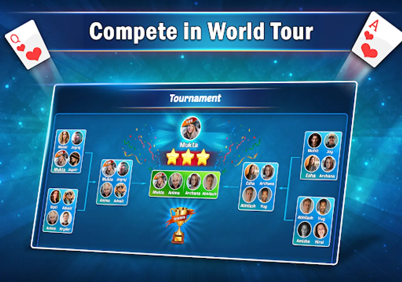 This popular Indian playing cards game is played by four players with a standard deck of 52
