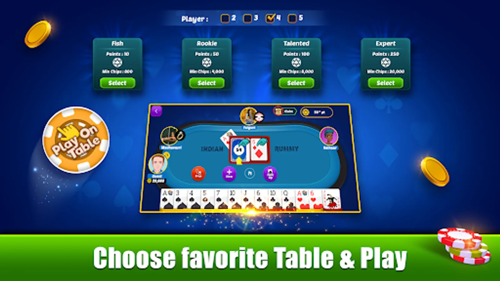 Mini-Games and scratch: Play exciting mini games and earn more chips with the Indian rummy game.