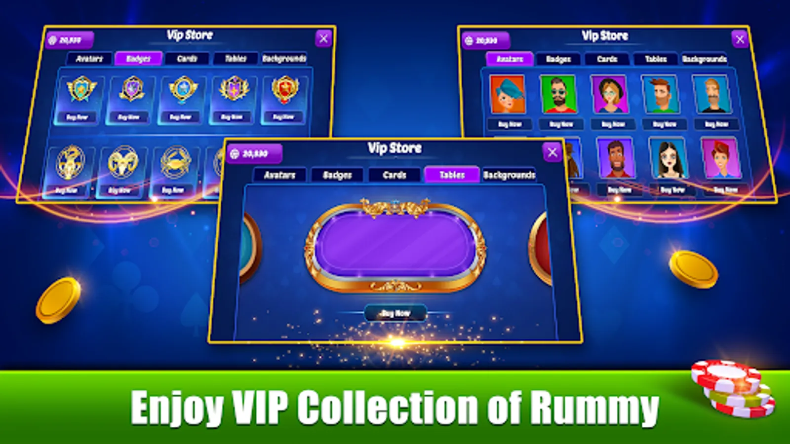 VIP Store: You can use Cards and Backgrounds from the VIP store of rummy. It will make your game experience extraordinary.