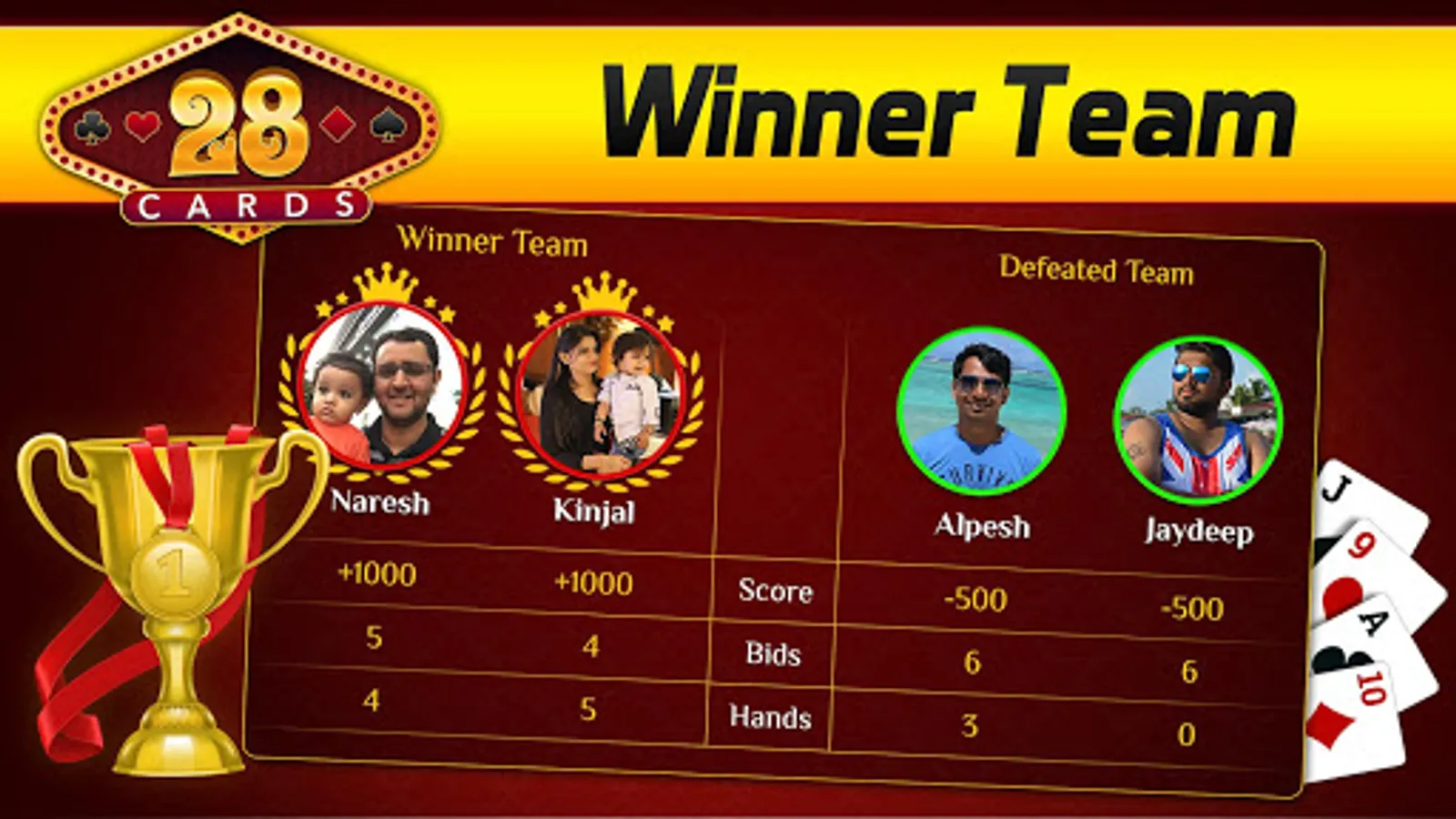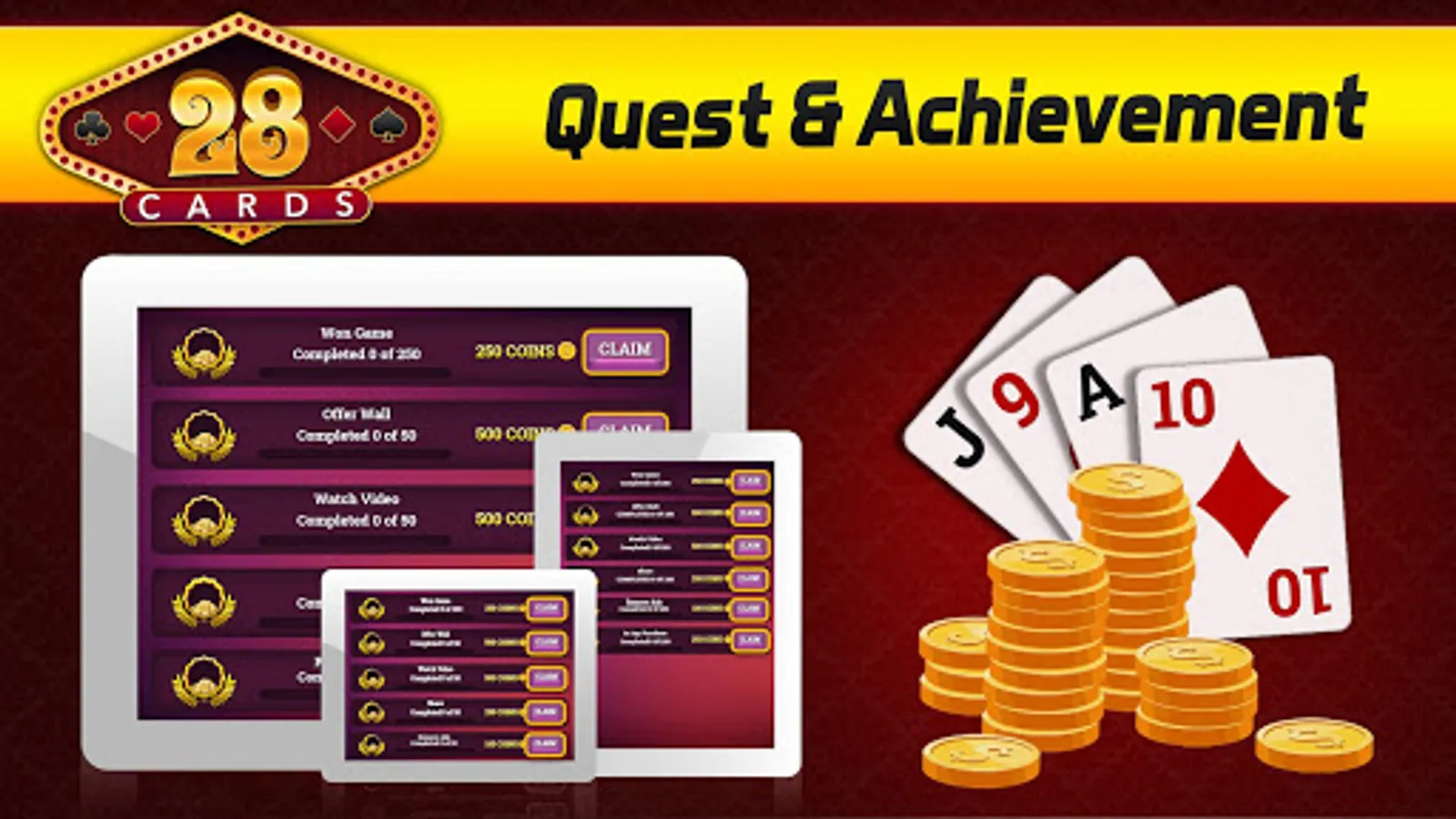 The best thing about Twenty-eight or 28 is that it is absolutely Free! Our 28 game features are a beautiful design it is just like 29 cards game, If you love other Jass Trick games like 29, team-based Spades, 29 card game, or Twenty Nine, you will love this too!