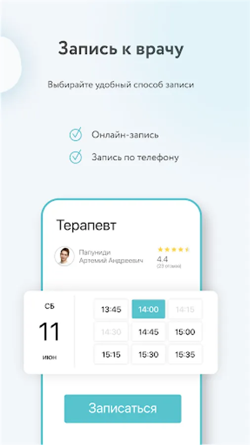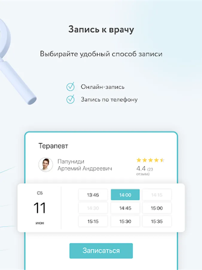 – Online appointment with a doctor.