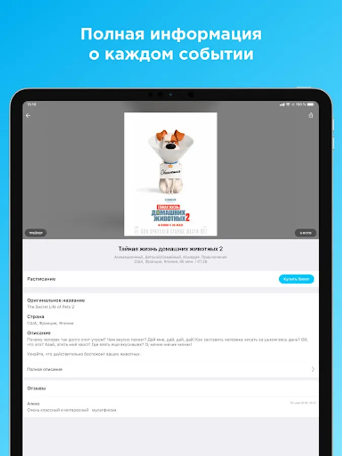 • Schedule, reviews, reviews, movie trailers.