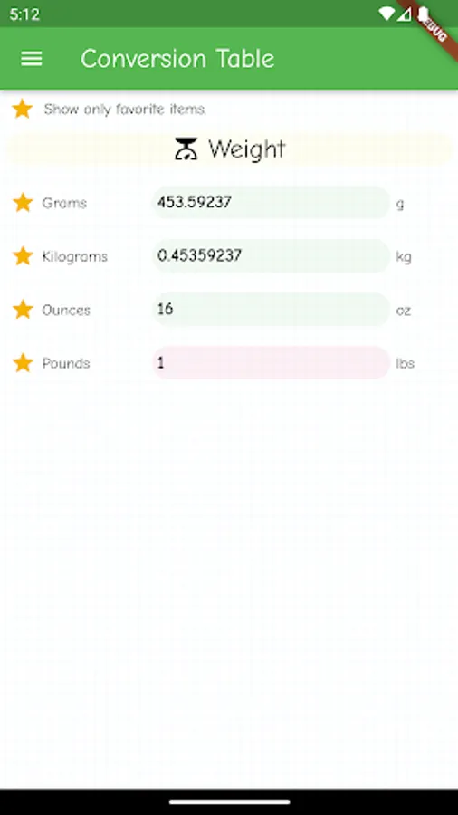 - weights (grams, kilograms, metric tons, milligrams, ounces, pounds)