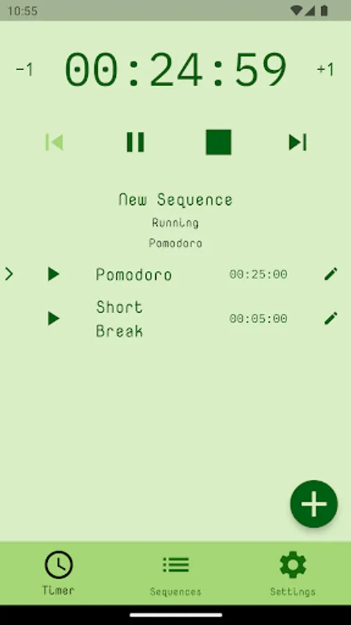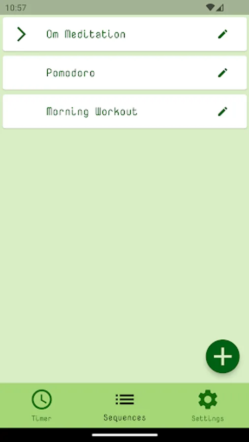 Om Timer allows to create sequences of countdown timers. When you start a sequence, its first timer starts counting down. When it is done, its action is triggered. The default action is to play a sound when each timer is done. Next, if there are more timers in the sequence, the next one is started. And so on. This way, you can create a series of timers to pace your activities.