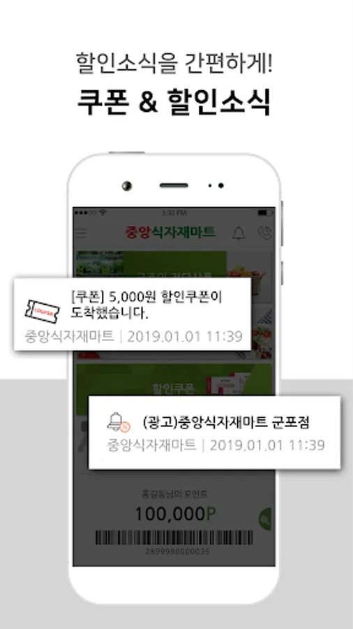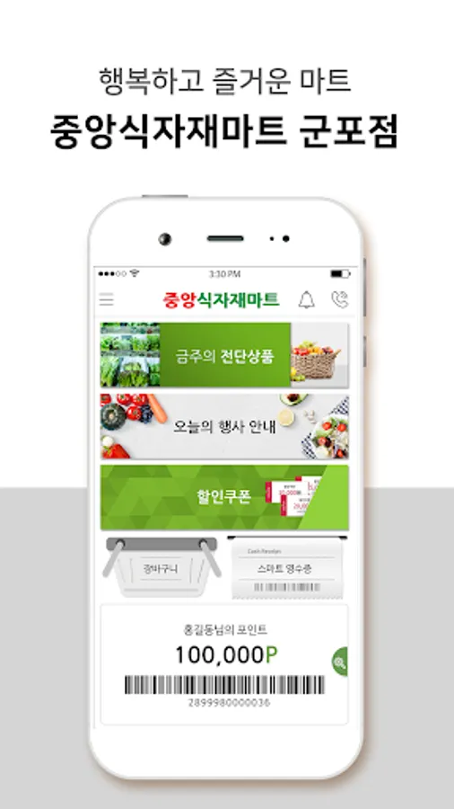 Enjoy a variety of benefits of the central food materials Gunpo store with your smartphone.