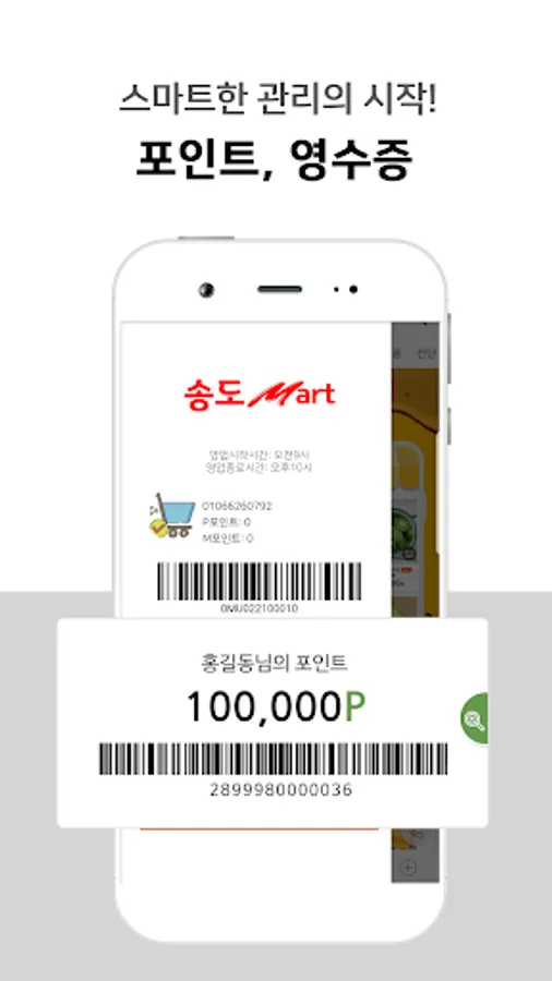 - (주)송도마트의 포인트 카드를 모바일로 편리하게 이용하시고, 언제 어디서든 포인트를 확인하실 수 있습니다.