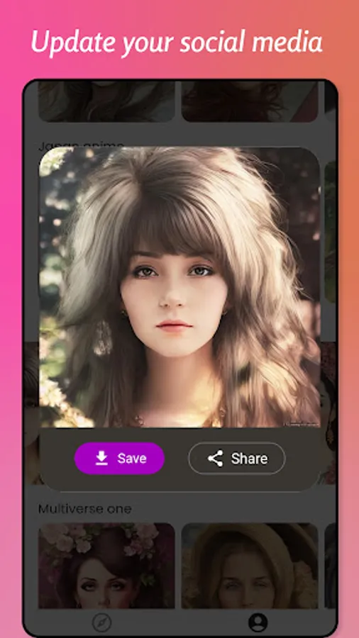ArtMe - AI Avatar Maker is easy to use and fun to play with. You can save your avatars in high quality and share them with others on social media platforms. You can also use them as stickers, wallpapers or profile pictures.