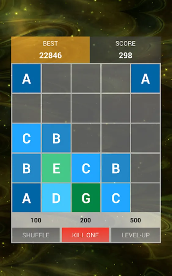 Z64 - a real evolution among the games based on bestseller 2048. On every step one new tile appears, starting with the letter "A". You need to combine the tiles using swipe movements on the playing field: up, down, left and right. When two tiles with the same letters are combined, the final tile increases its rank in alphabetical order. Tiles can also occasionally mutate and the chance depends on their current rank (for example, a combination of tiles "A" can result in a new tile "C", "B" - "D", and so on). You will lose if the field is filled completely and there are no neighbours with the same rank. Do not let this happen!