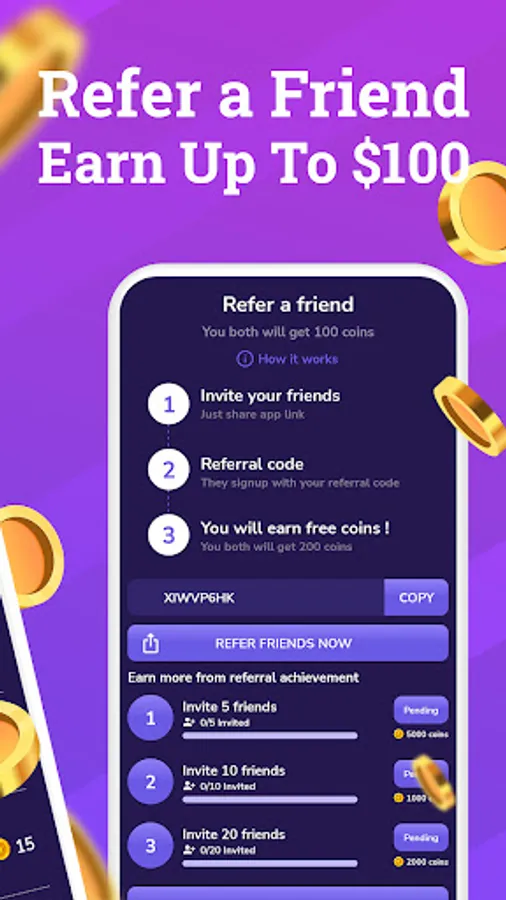 -Invite your friends to join free app through the referral program and earn commission on their game rewards.