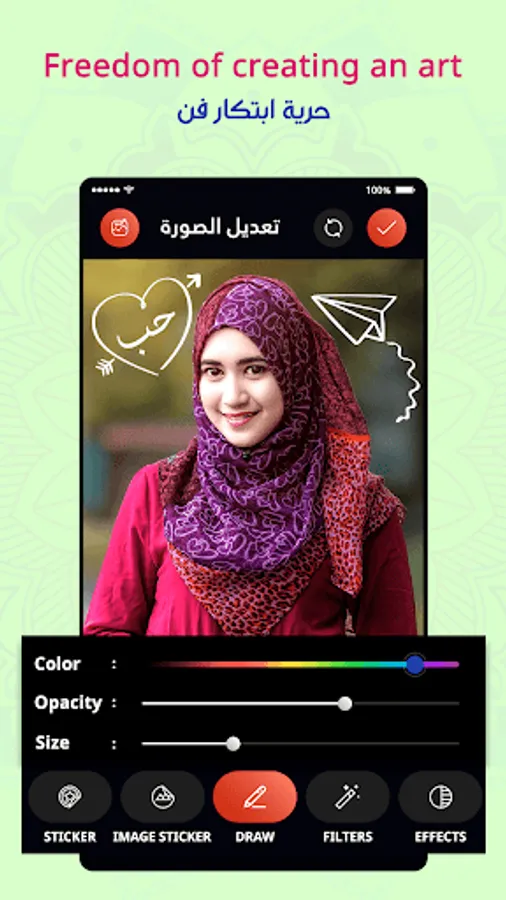 Feature of Arab Photo Designer: Write Arabic text on Photo app: