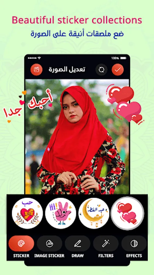 - Stylish stickers with Arabic text.