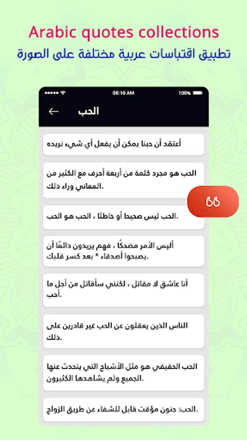 - Different categories of Arabic quotes.