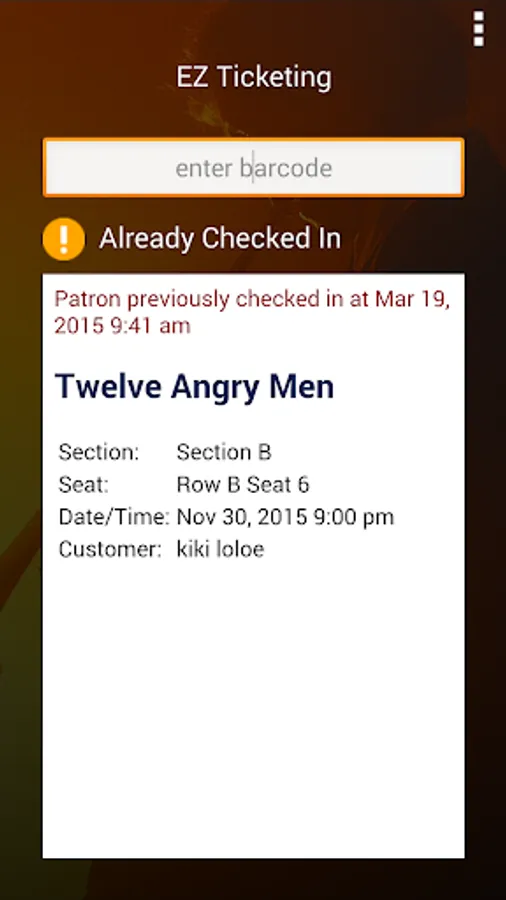 Artspoints Ticketing is an intuitive and powerful web-based box office solution. Your patrons can easily view your venue diagram and select their tickets by pointing and clicking. Tickets are printed at home or displayed on a mobile device at the door. Each ticket contains a unique barcode which can be scanned at the door for check in. By connecting a Bluetooth scanner, you can make any smartphone or table a mobile ticket scanning station. As you scan the tickets the patrons are checked in, and you receive visual and auditory feedback of the ticket status, whether it is a successful check in or not.