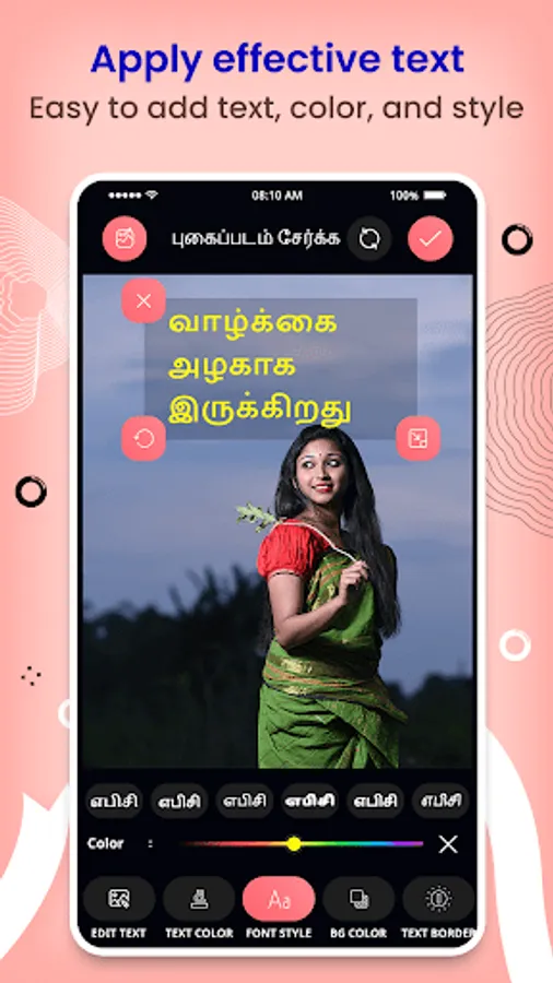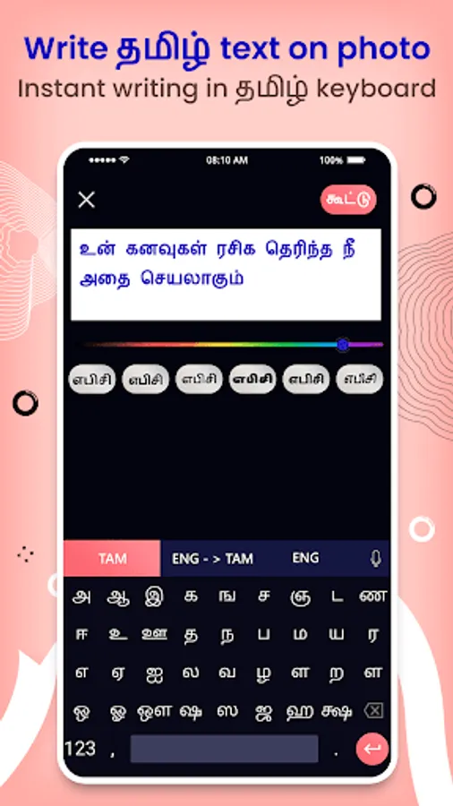 தமிழ் விசைப்பலகை பயன்படுத்தி புகைப்படத்தில் தமிழ் உரையை எழுதுங்கள்.