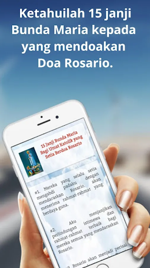 π Melalui doa Rosario kita berdoa bersama Bonda Maria dan memohon agar ia menghantar doa- doa kita kepada Tuhan Yesus.