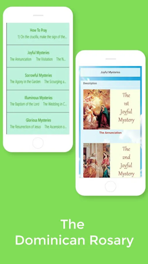 This feature consists of how to pray the Dominican Rosary, a prayer that lies the mysteries of salvation. Also included are the 4 mysteries - Joyful Mysteries, Sorrowful Mysteries, Luminous Mysteries and Glorious Mysteries.