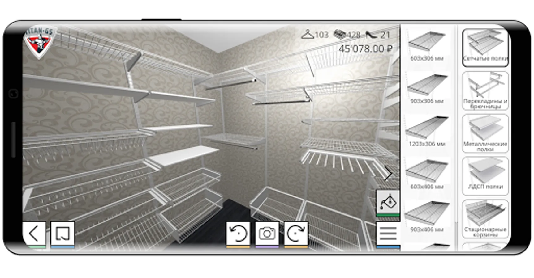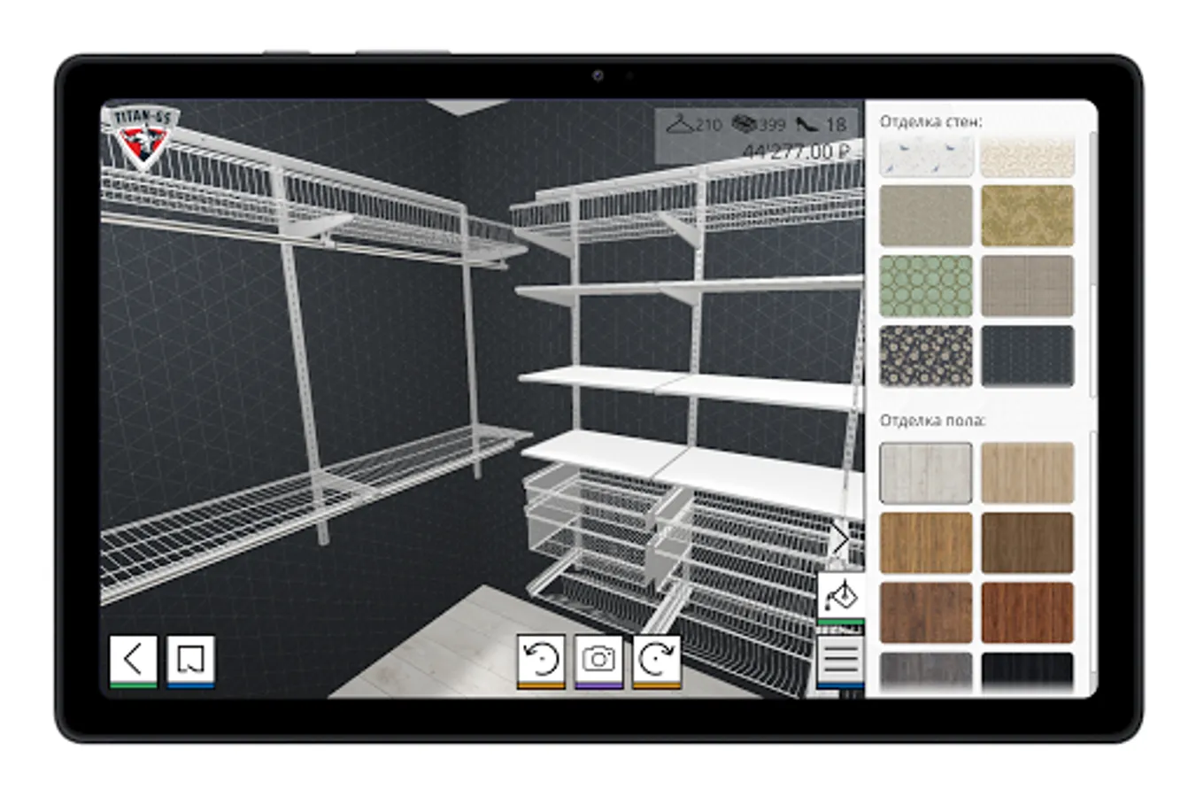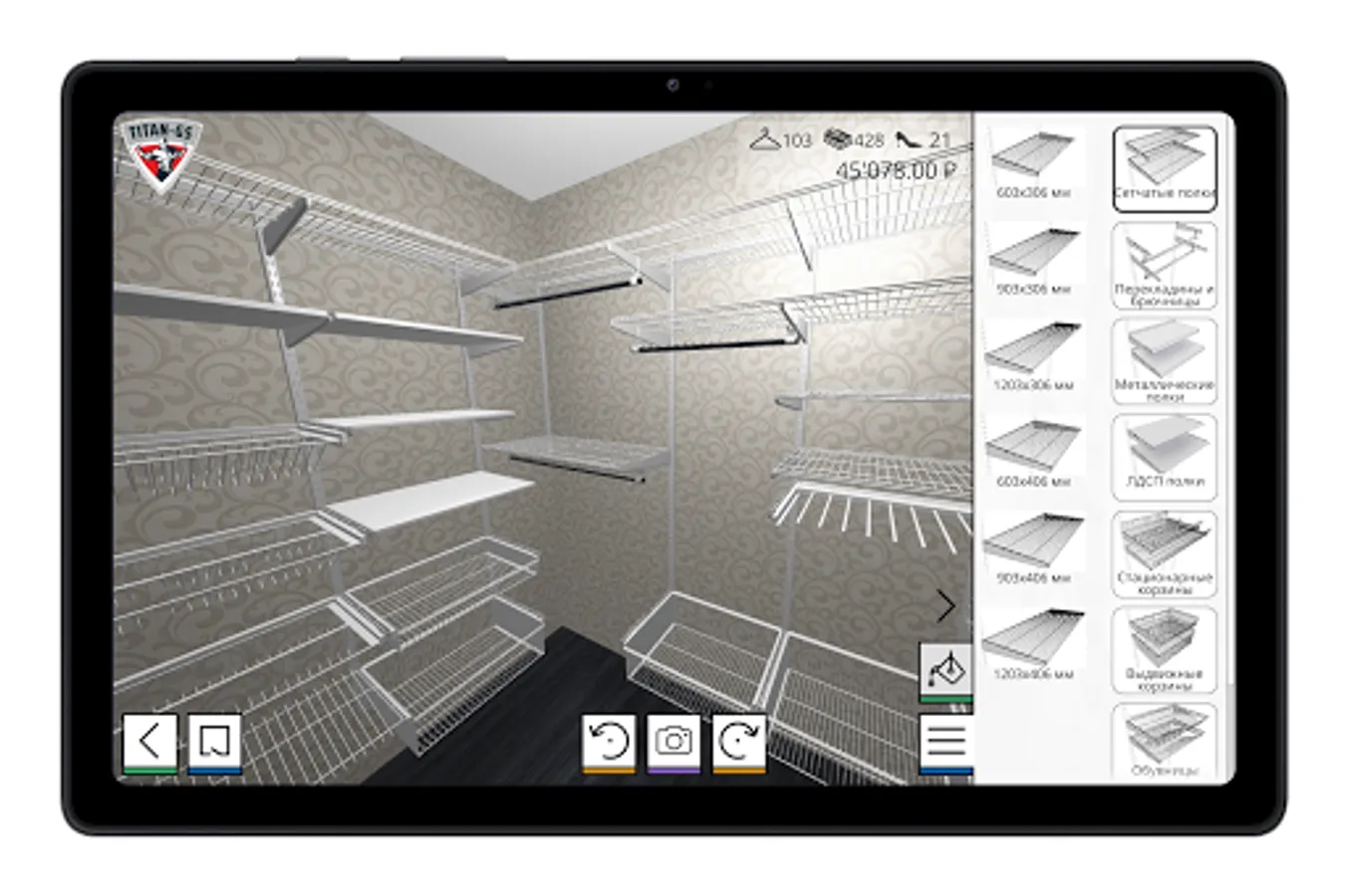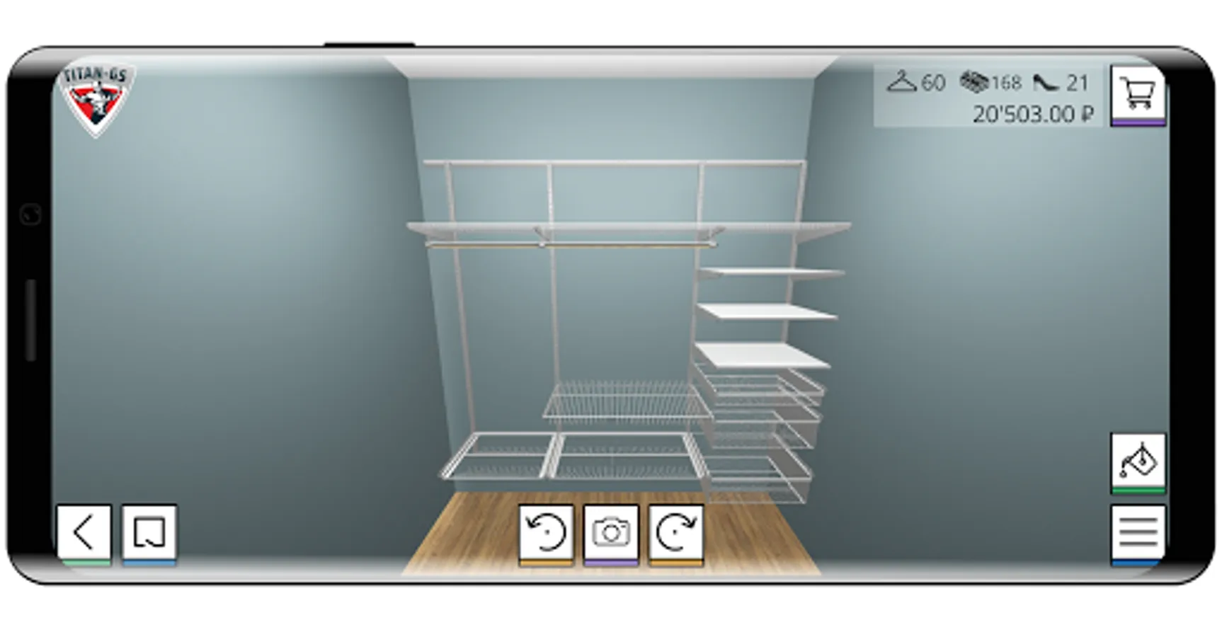 Using the TITAN-GS application, within a few minutes you will create your own storage system or dressing room, calculate the filling and see the visual appearance of the finished composition.