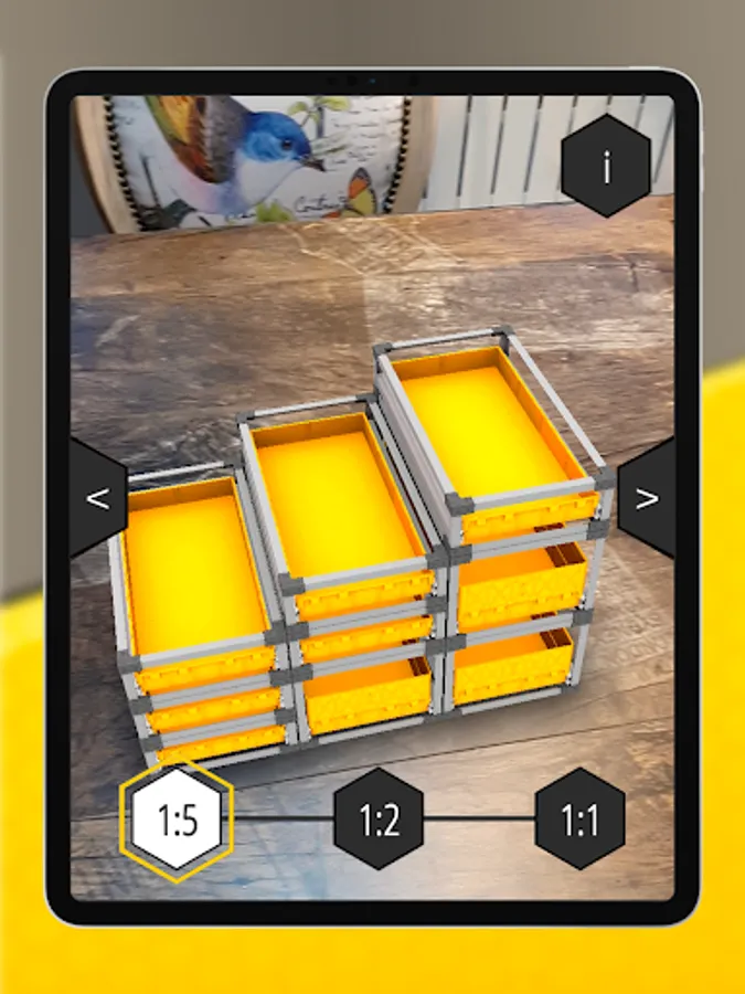 The Moshran demo application allows you to see modular storage systems in augmented reality. To view, use our catalog. Just point the application to the catalog cover and try on modular storage systems in your room.