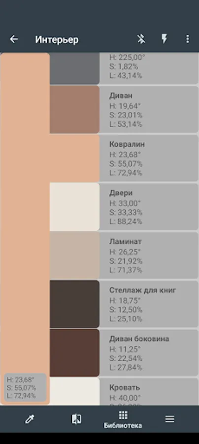 • Determination of the nearest color from the bases: Basic, HTML, RAL, NCS.