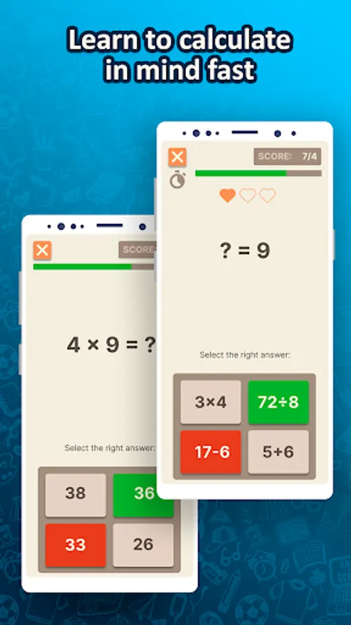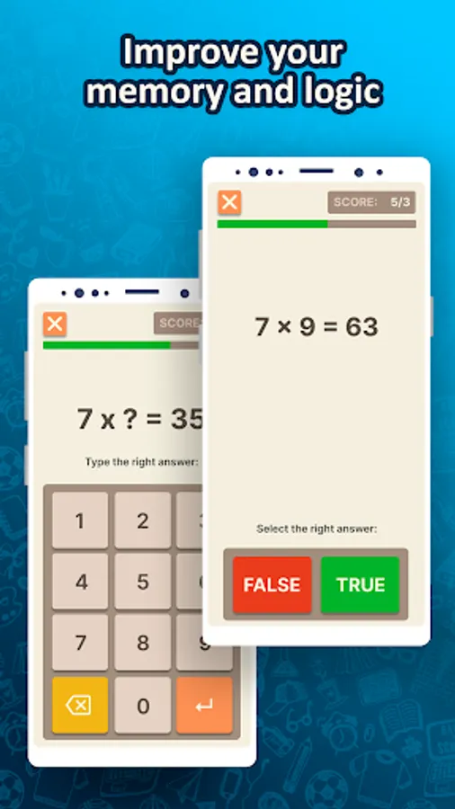 We designed this app to help you learn how to multiply quickly, improve attention, memory, logical, math skills and more. This free mathematics games app is suitable for every age group from school kids π§π¦ to adults π©π¨ and even seniors π΅π΄. Do brain exercises and develop different mental skills and get smarter.