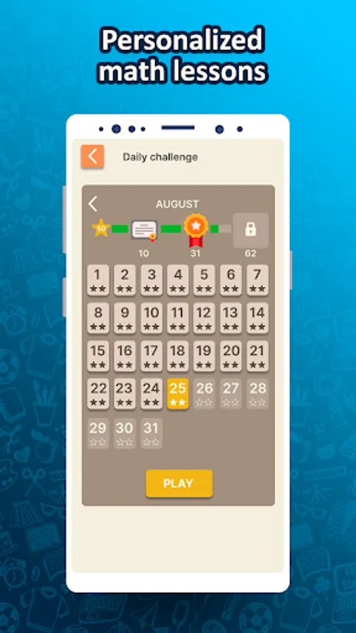 Keep your brain power on the highest level and increase logical skills completing math challenges every day and reaching awards!