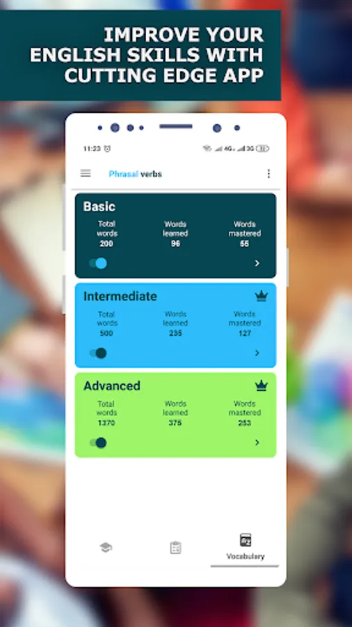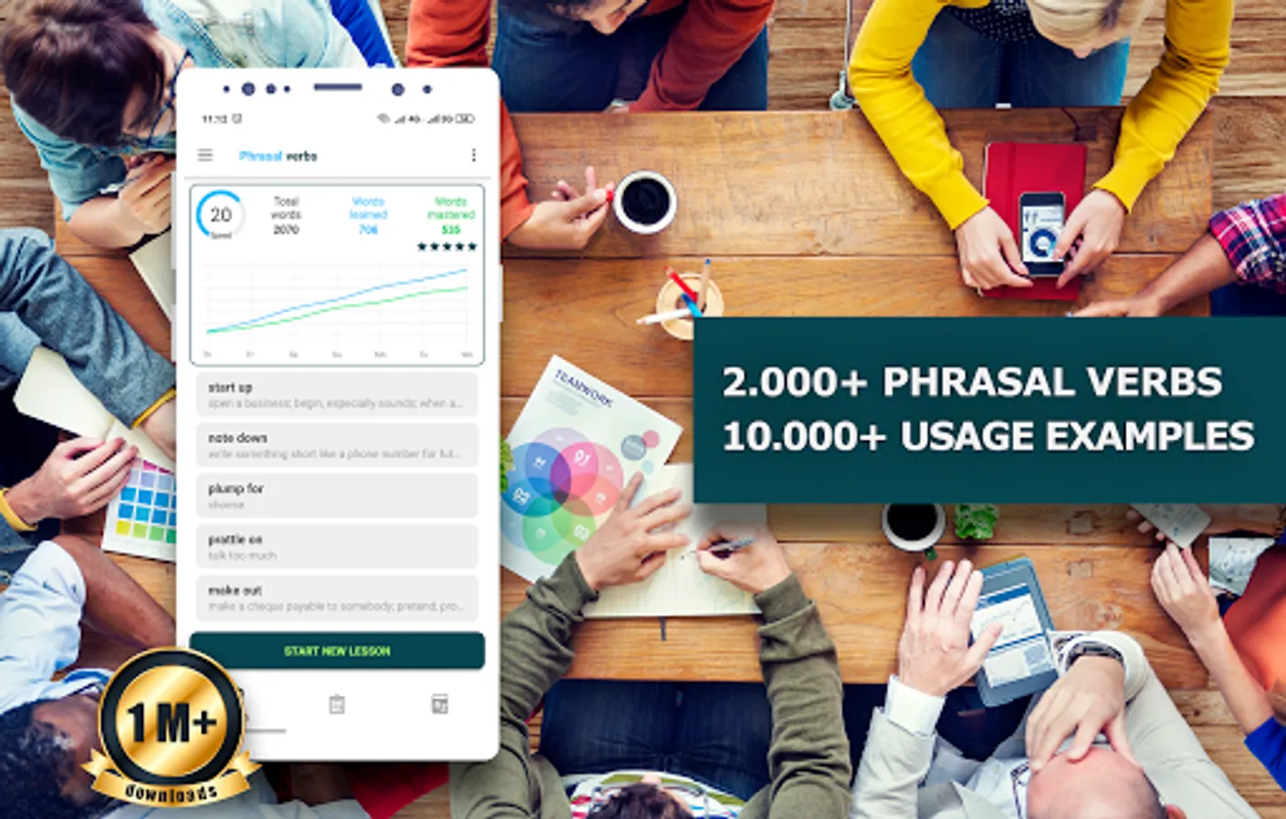 There are more than 10,000 phrasal verbs in English. Since they cannot been translated verbatim, you just need to learn and memorize them. In this words booster app we have collected more than two thousand the most usable phrasal verbs for learning and mastering and made user-friendly interface, which helps to make learning process quit simple and fast.