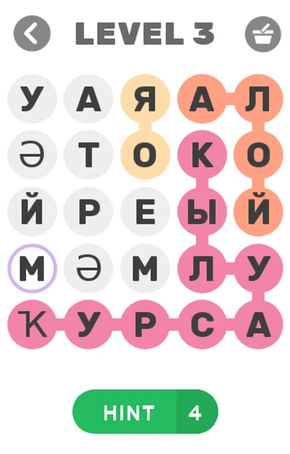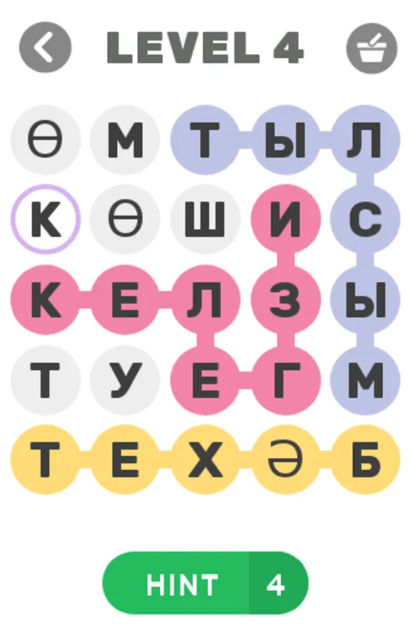 Your task is to find the hidden words in the table of letters. Select adjacent letters with your finger and make words familiar to you from them.