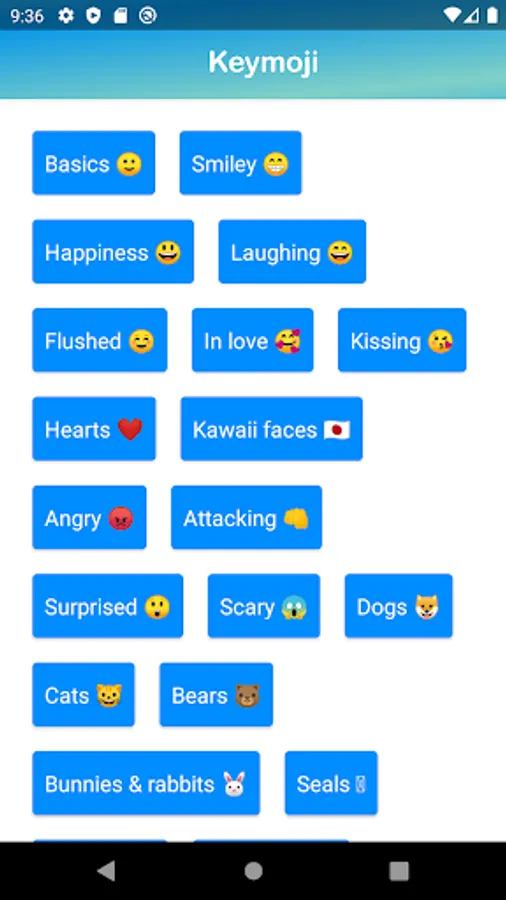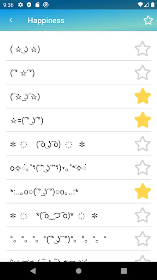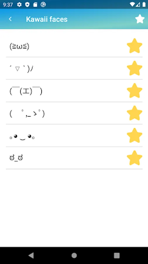 Lots of faces made with the keyboard, Kawaii faces or Kaomojis, easy to discover since they are all classified by categories such as different moods, actions or animals.