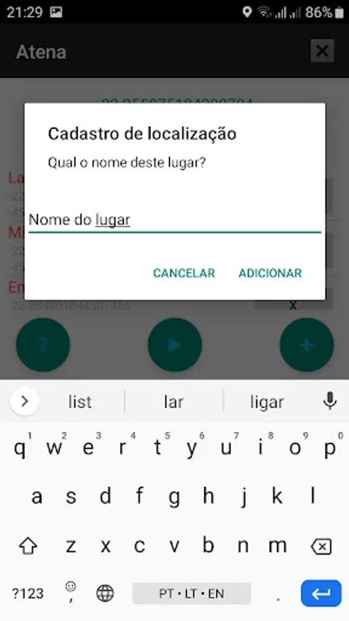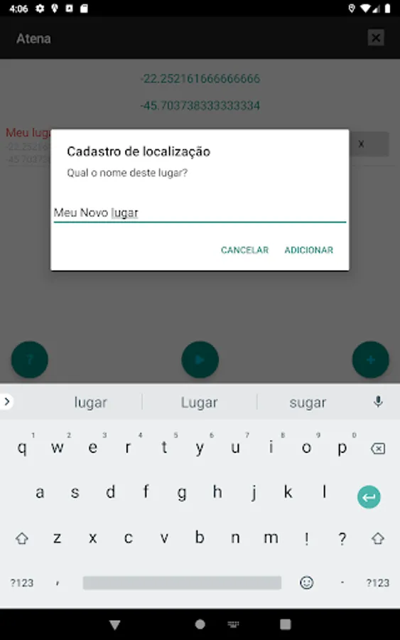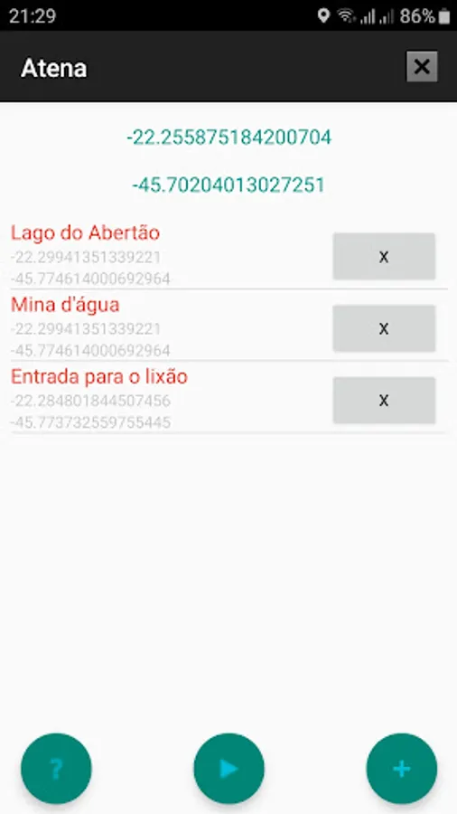 Athena is a simple application that allows your current location to be registered on your Smartphone so that you can create a list of places of interest.