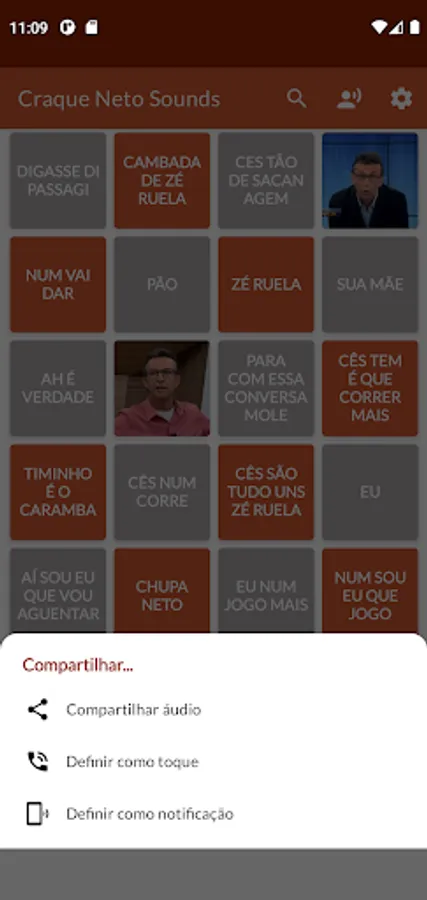Listen and share Craque Neto audios with your friends. It is possible to share Neto's audios and images through Whatsapp, Facebook, Instagram and other social networks. It includes phrases such as "Digasse de passage", "Cês so de sacanagem", and many other famous phrases from the world of football.